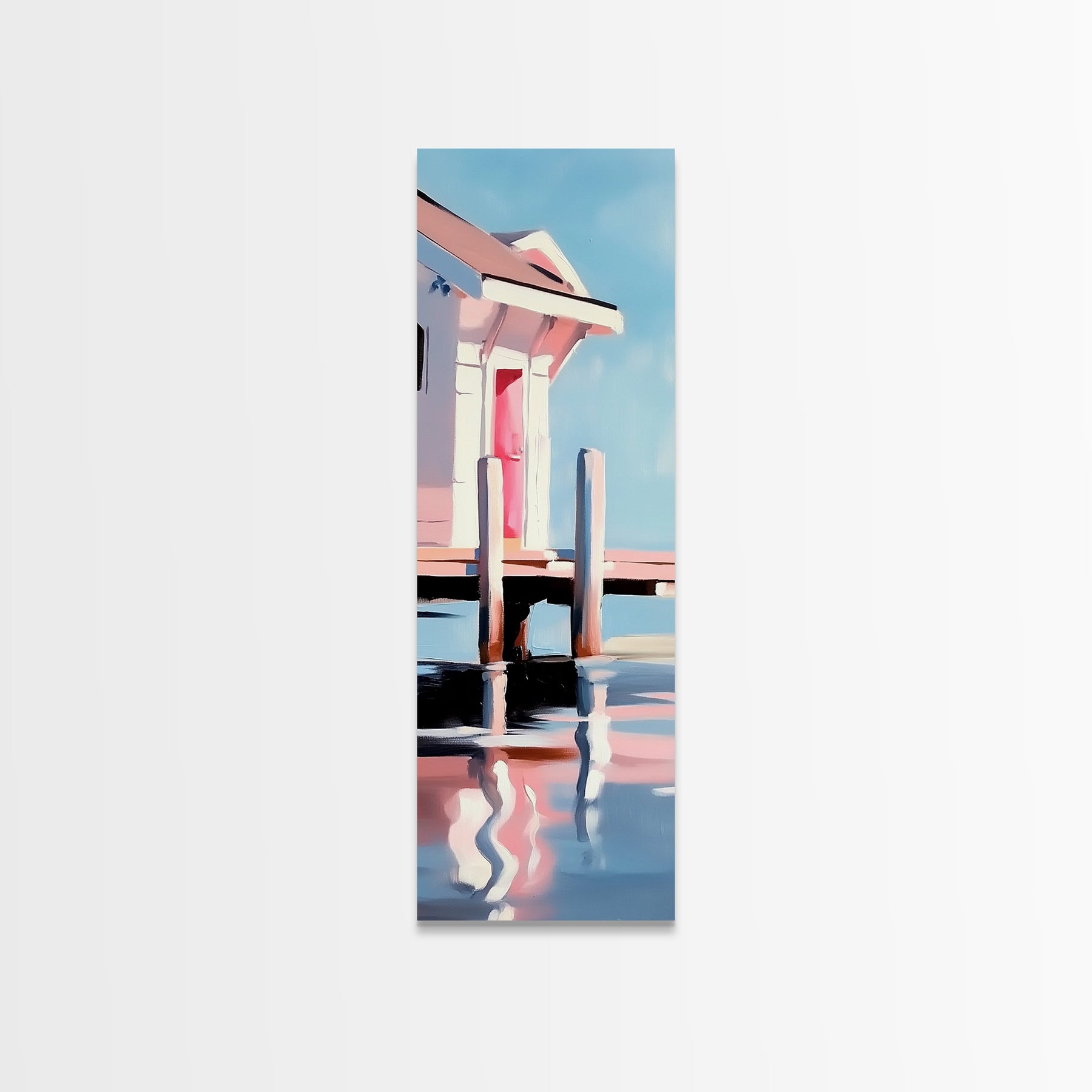 Dock House, Coastal Wall Art, Beach House Decor, Nautical Artwork, Ocean Reflection, Seaside Art, Living Room Art, Canvas Print