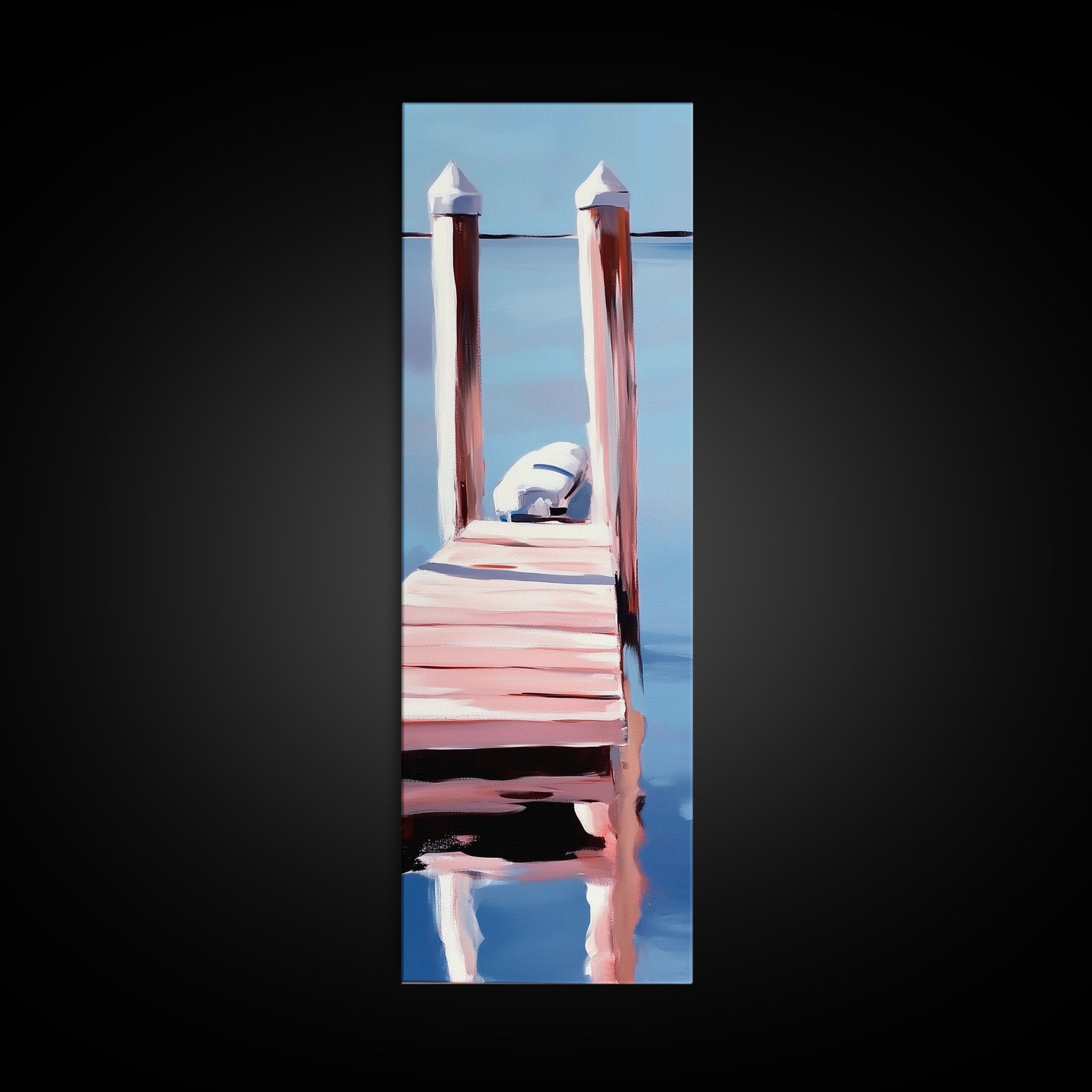 Dock Reflection, Calm Waters, Nautical Aesthetic, Serene Landscape, Coastal Home Decor, Minimal Framed Canvas Print, Tranquil Vibes