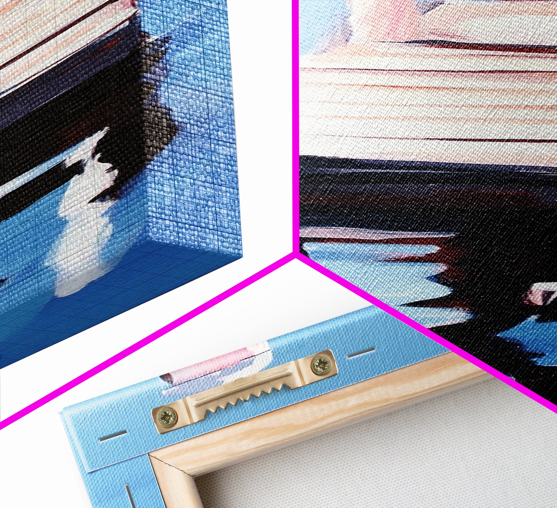Hello and thank you for taking the time to view our modern high quality giclée artwork! We offer both posters and stretched canvas prints. Our posters are printed on Ultra Matte 60 lb / 230 GSM high quality photo paper, with a thickness of 10 mil. Our canvases are printed on museum grade 350 GSM canvas material with ECO friendly archival grade ink, then hand stretched and stapled over premium, FSC certified and shrink resistant frames. Designed and built to last a lifetime.