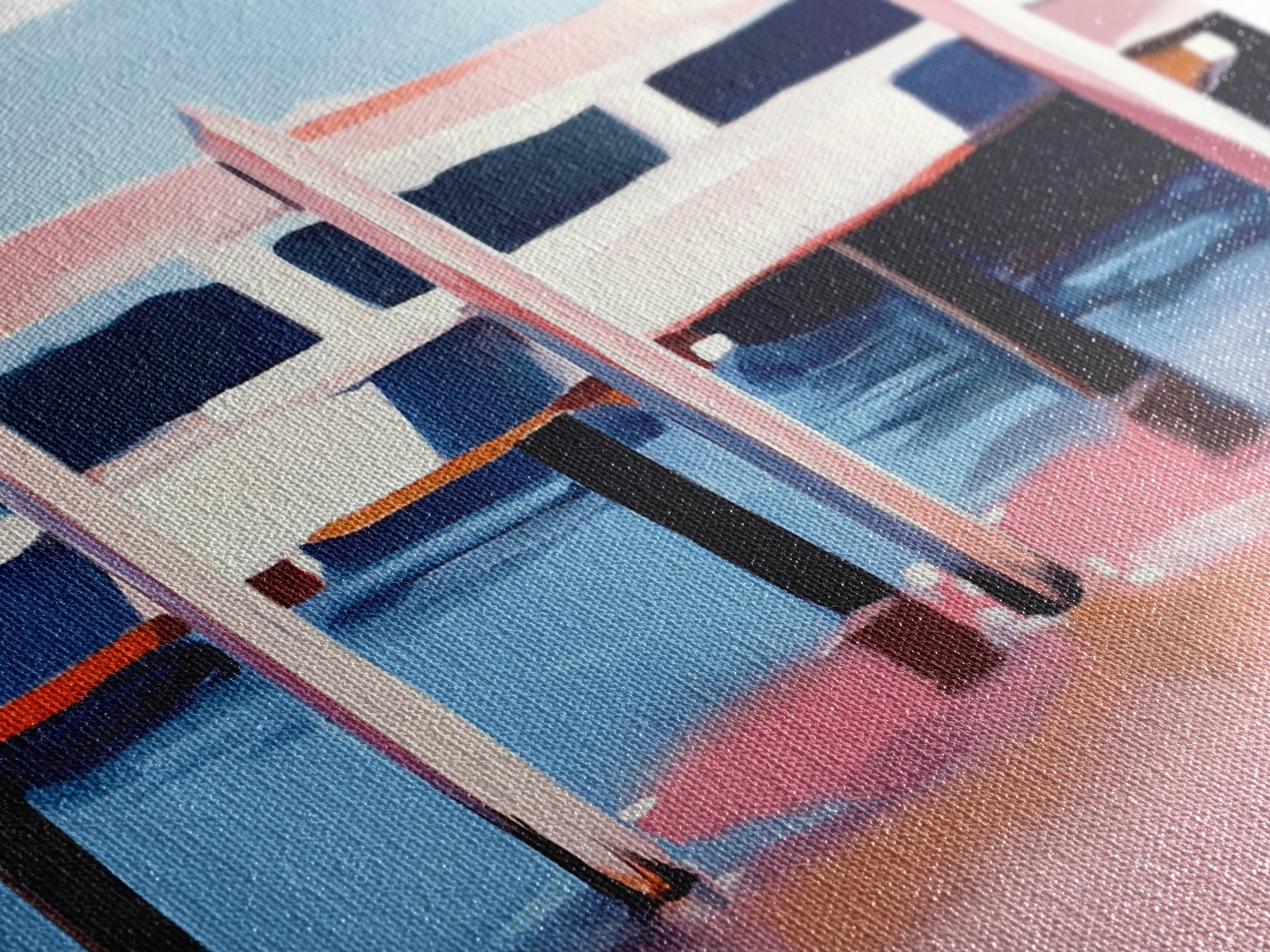 Most of our canvases are made in the USA, with the exception of canvases ordered with the light oak unstained frames, and any large canvases (24x48, 30x60, 16x48 and 20x60) ordered WITH a frame. These are temporarily made in and shipped from Europe, while we try to find a more consistent supplier in the USA.