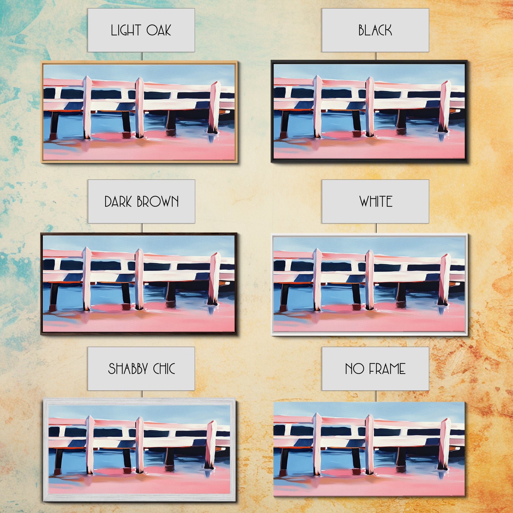 *Optional frames add a total of 1.5 inches to each dimension, for example a 10x20 canvas with a frame will be 11.5 by 21.5 inches total. All framed canvas are 1.5" total depth.