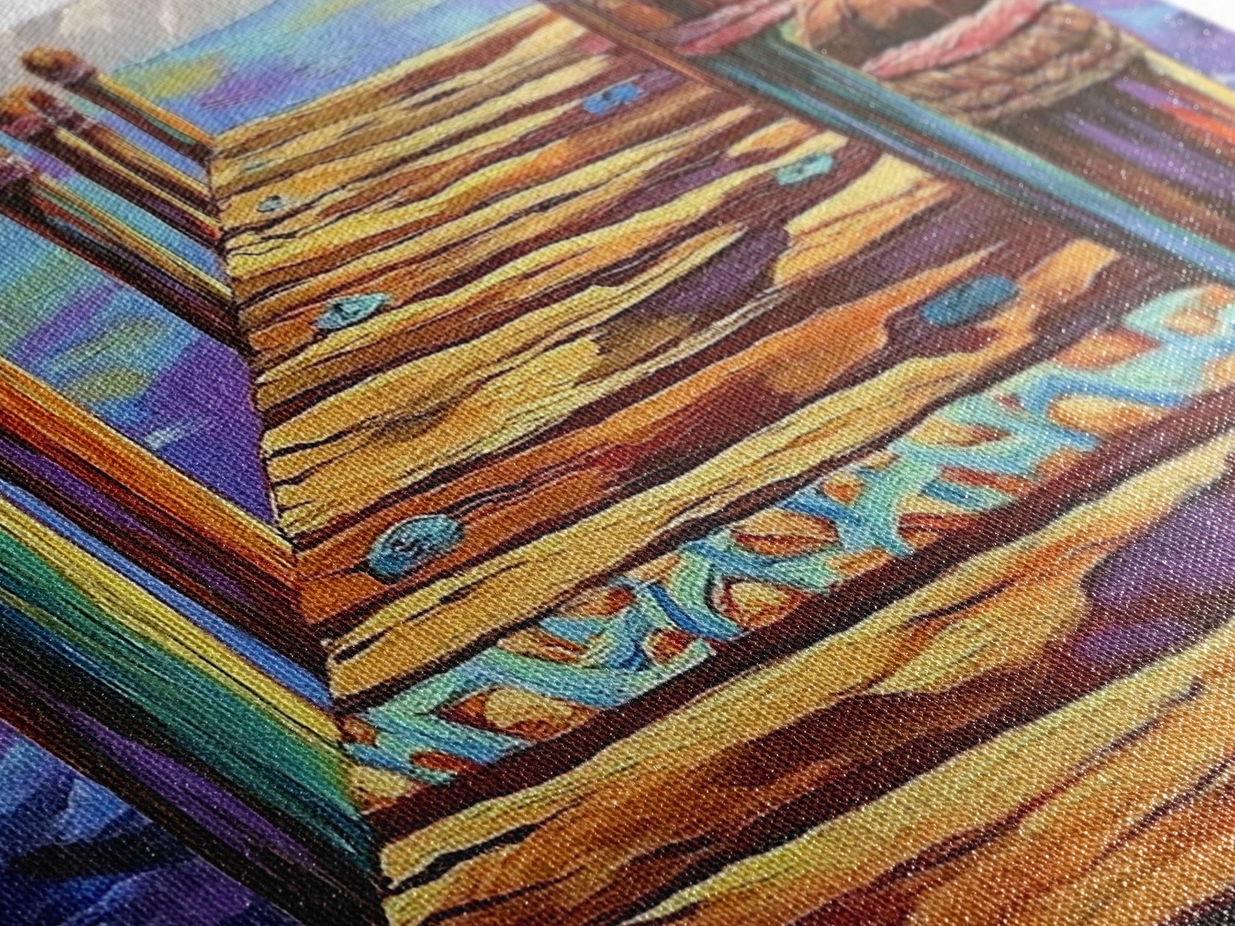 Most of our canvases are made in the USA, with the exception of canvases ordered with the light oak unstained frames, and any large canvases (24x48, 30x60, 16x48 and 20x60) ordered WITH a frame. These are temporarily made in and shipped from Europe, while we try to find a more consistent supplier in the USA.
