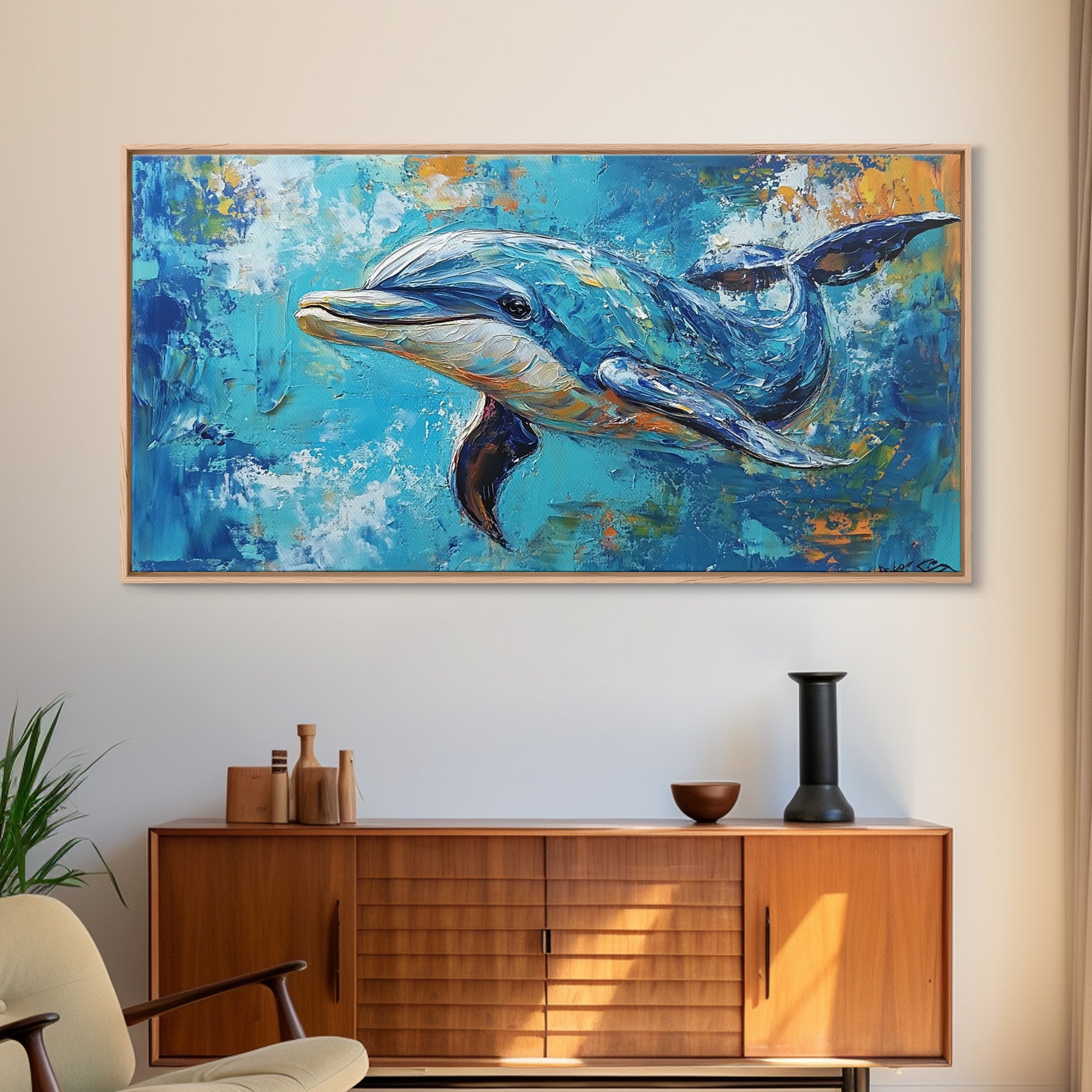 Dolphin Painting, Whale Painting, Blue and Green Wall Art, Nautical Wall Art, Gift Idea for Her, Ocean Art, Canvas Print, Coastal Decor