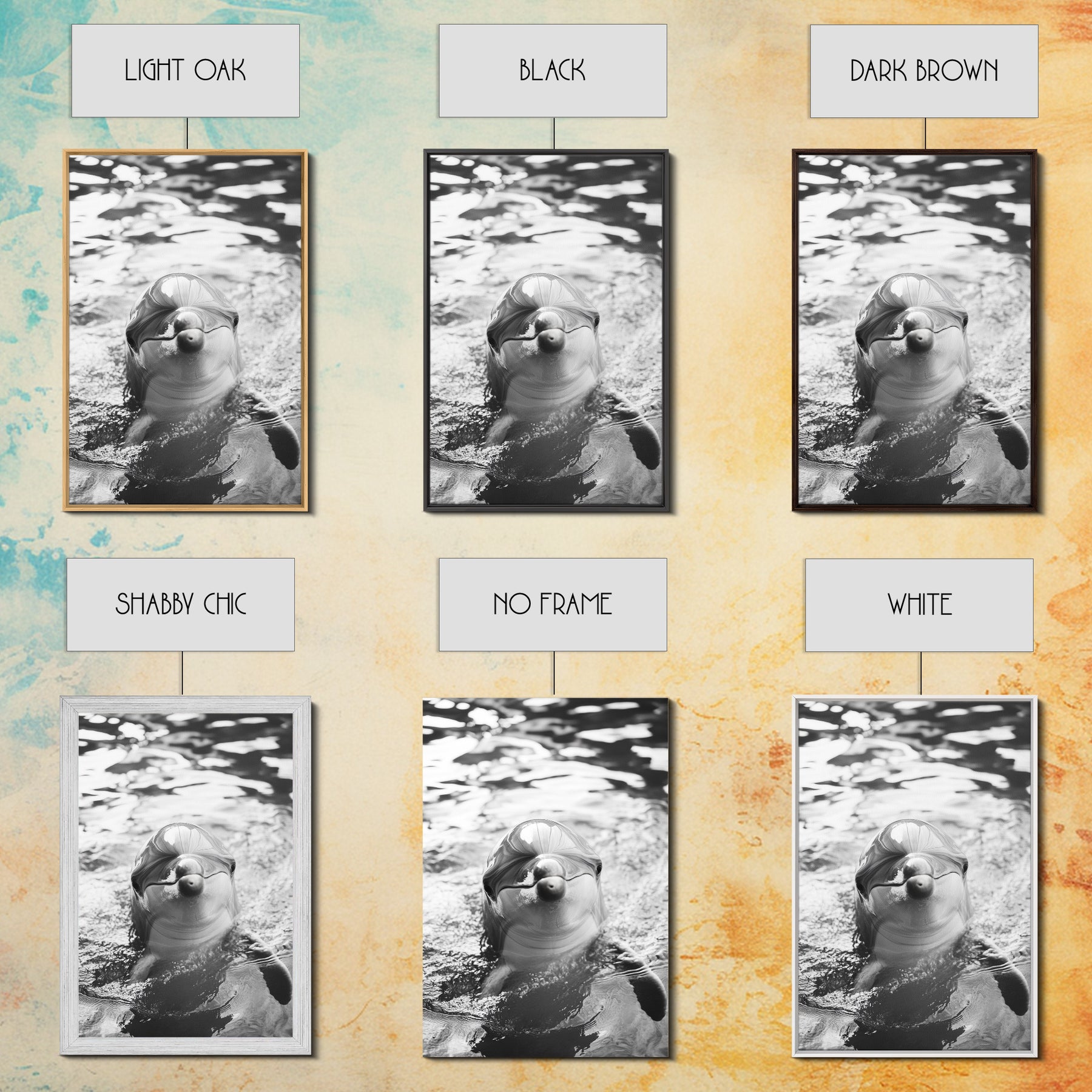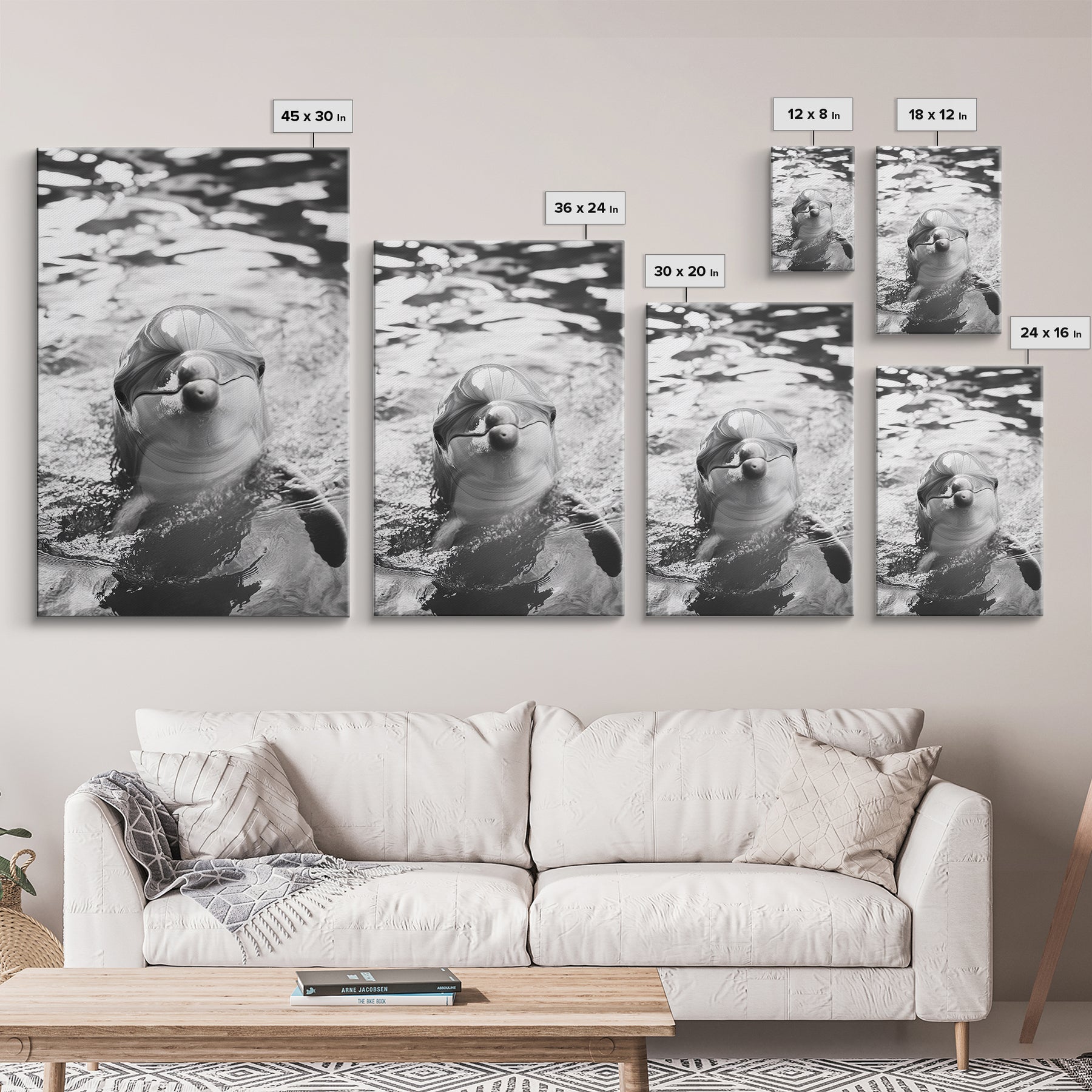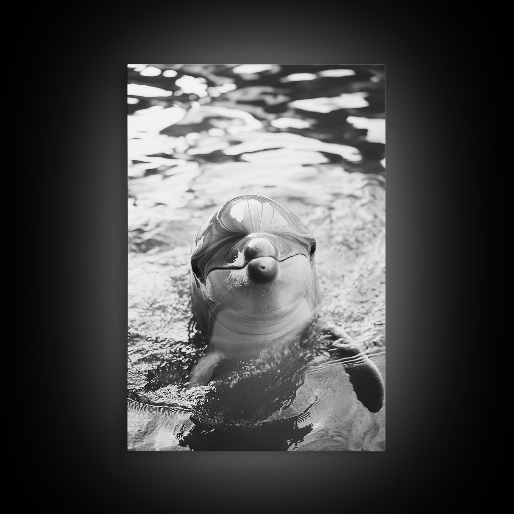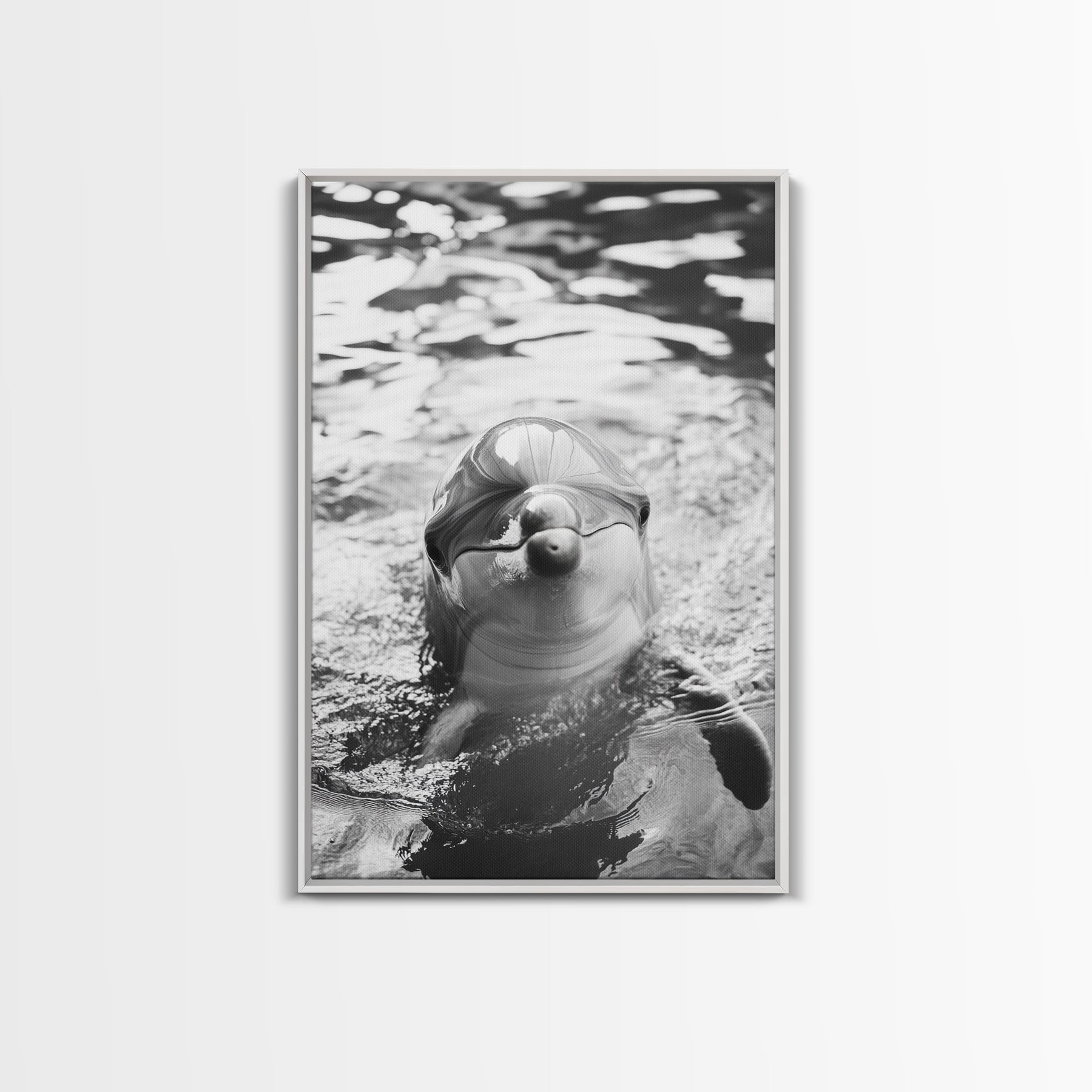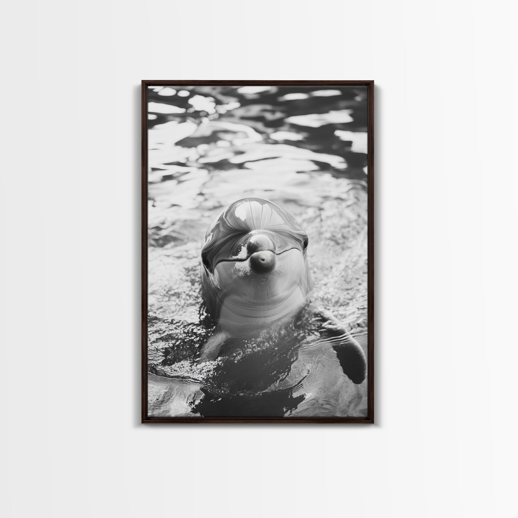 Dolphin Smile, Ocean Friend, Water Reflections, Gentle Waves, Framed Canvas Print, Kids Bathroom Art, Marine Life Decor, Playroom Artwork