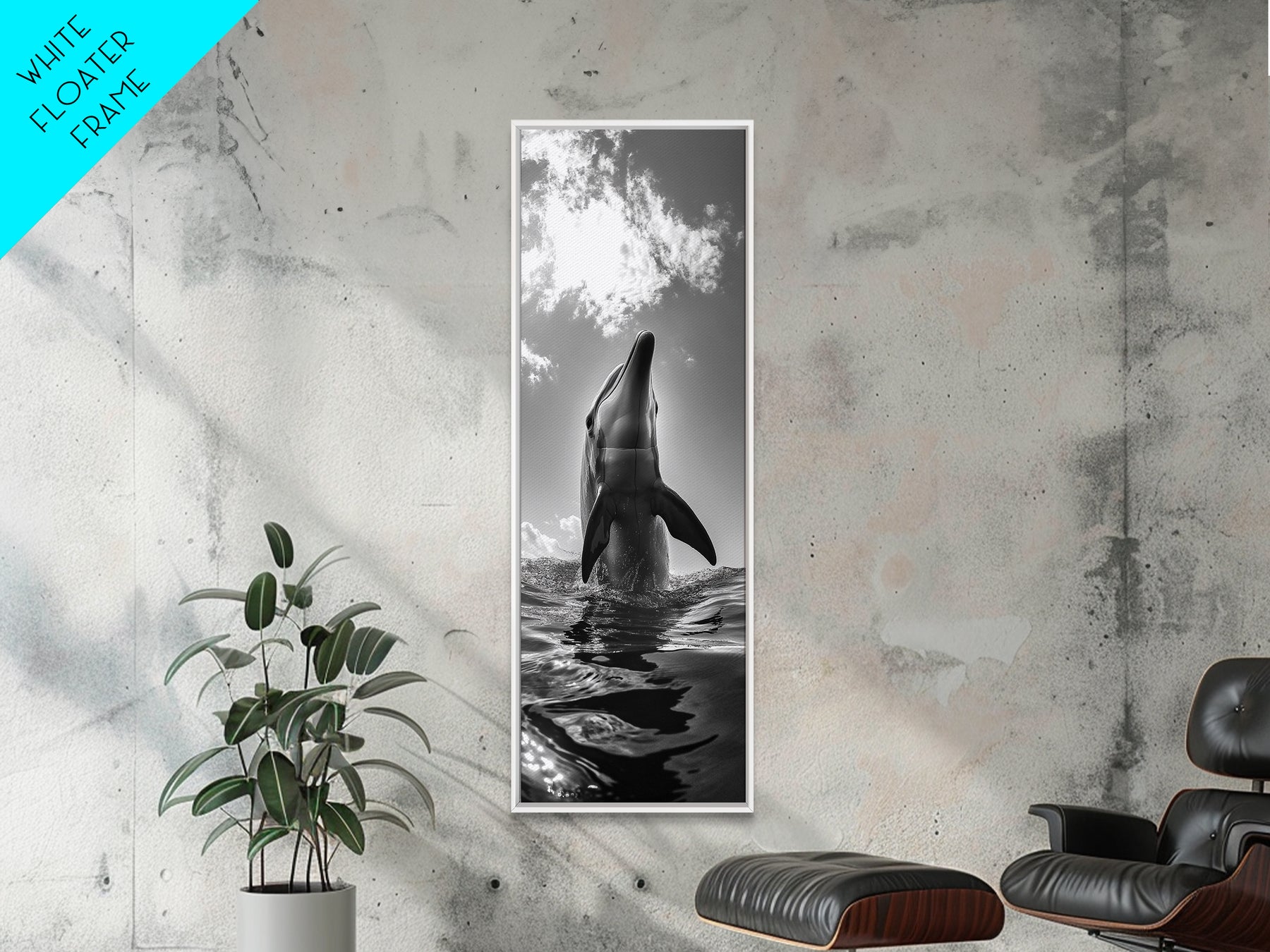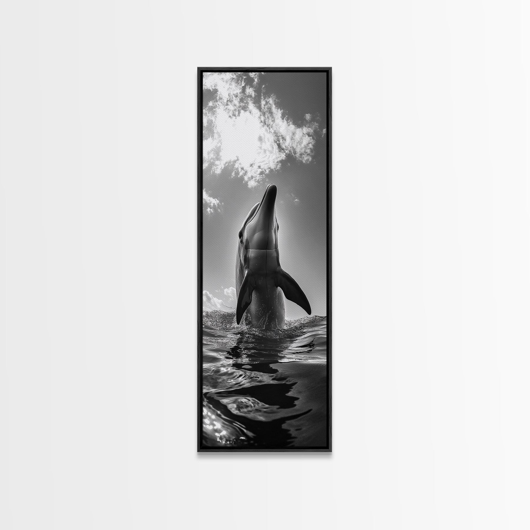 Dolphin Splash, Ocean Play, Marine Wildlife, Canvas Print, Coastal Bathroom Wall Art, Animal Lover Decor, Minimalist Ocean Scene