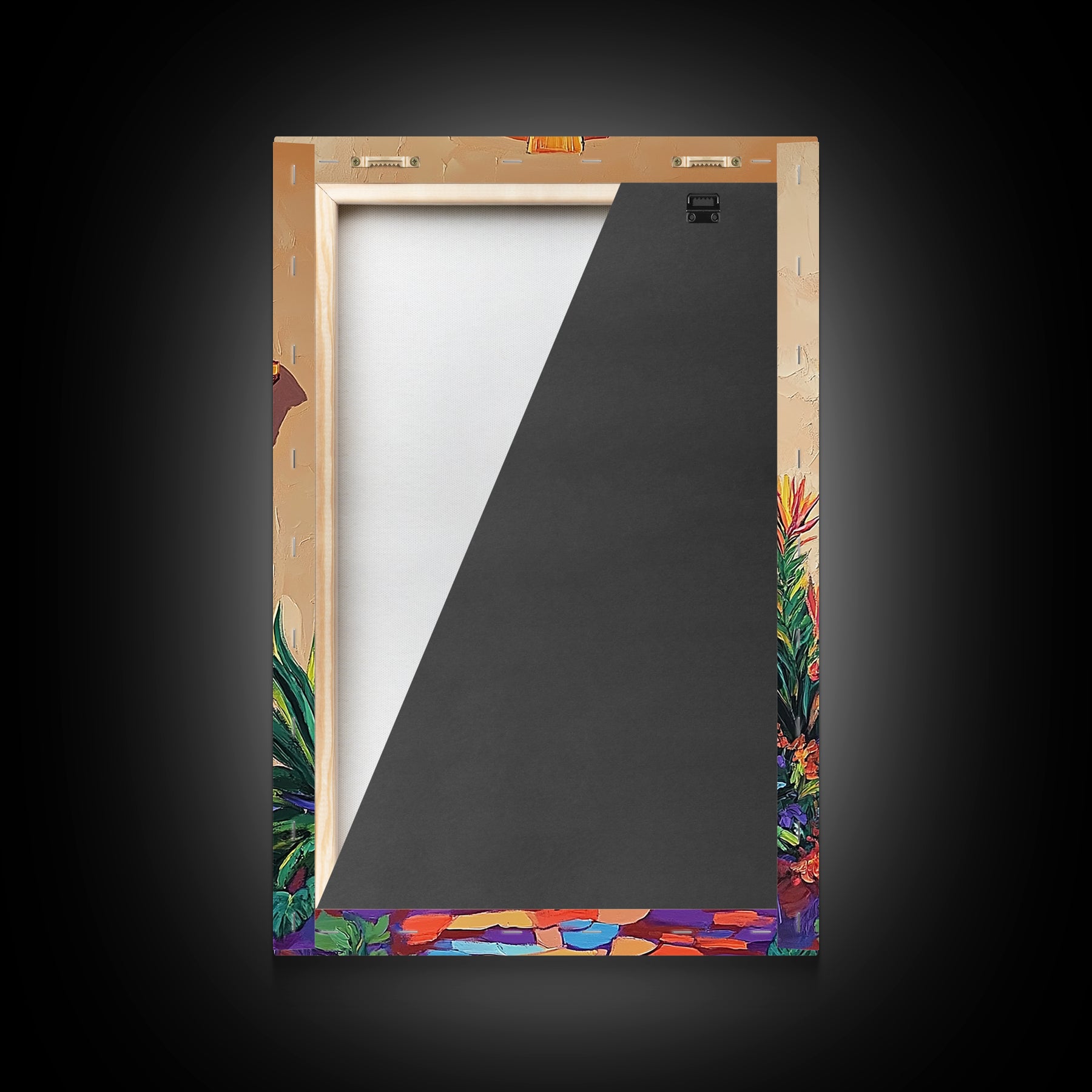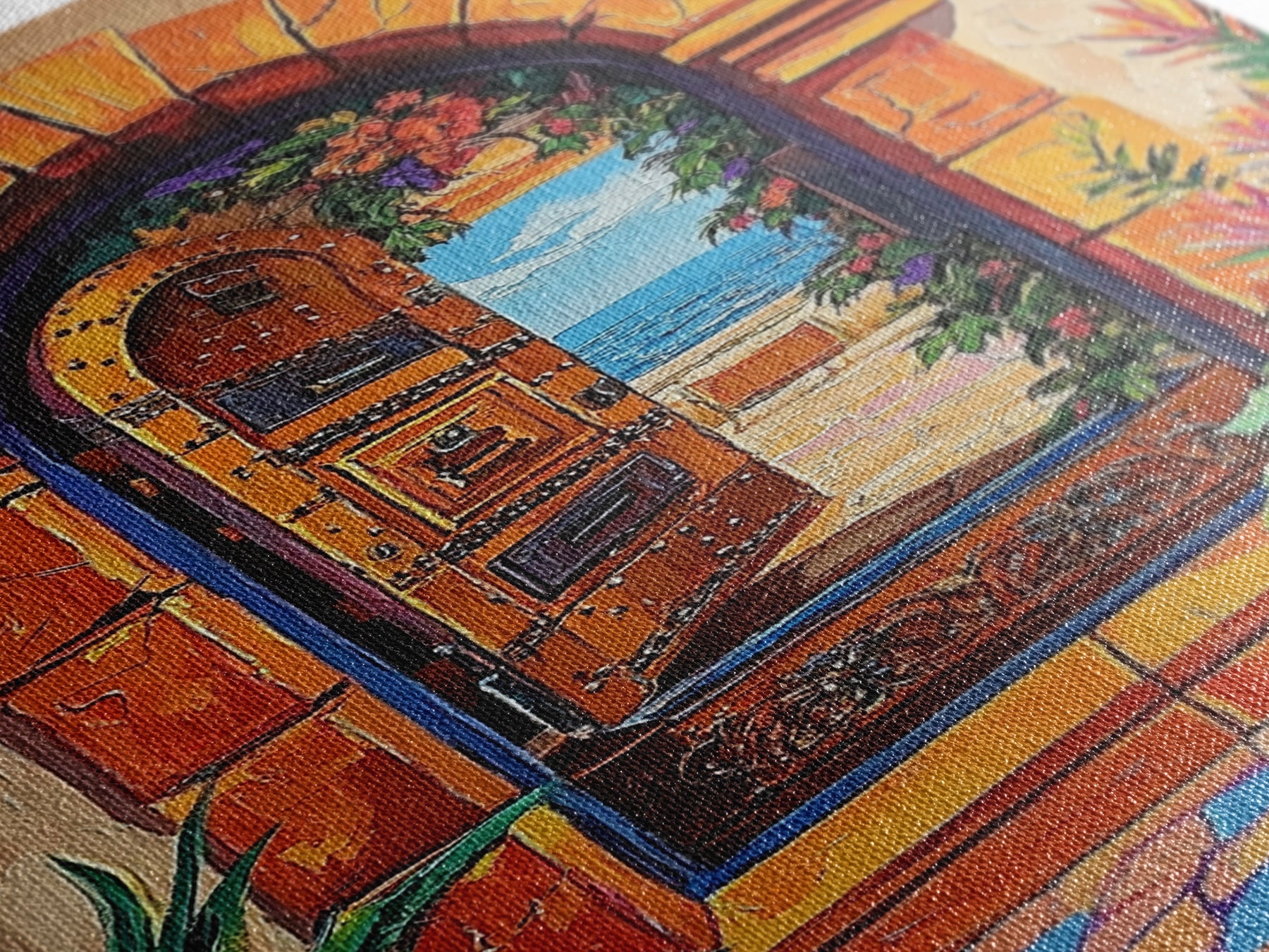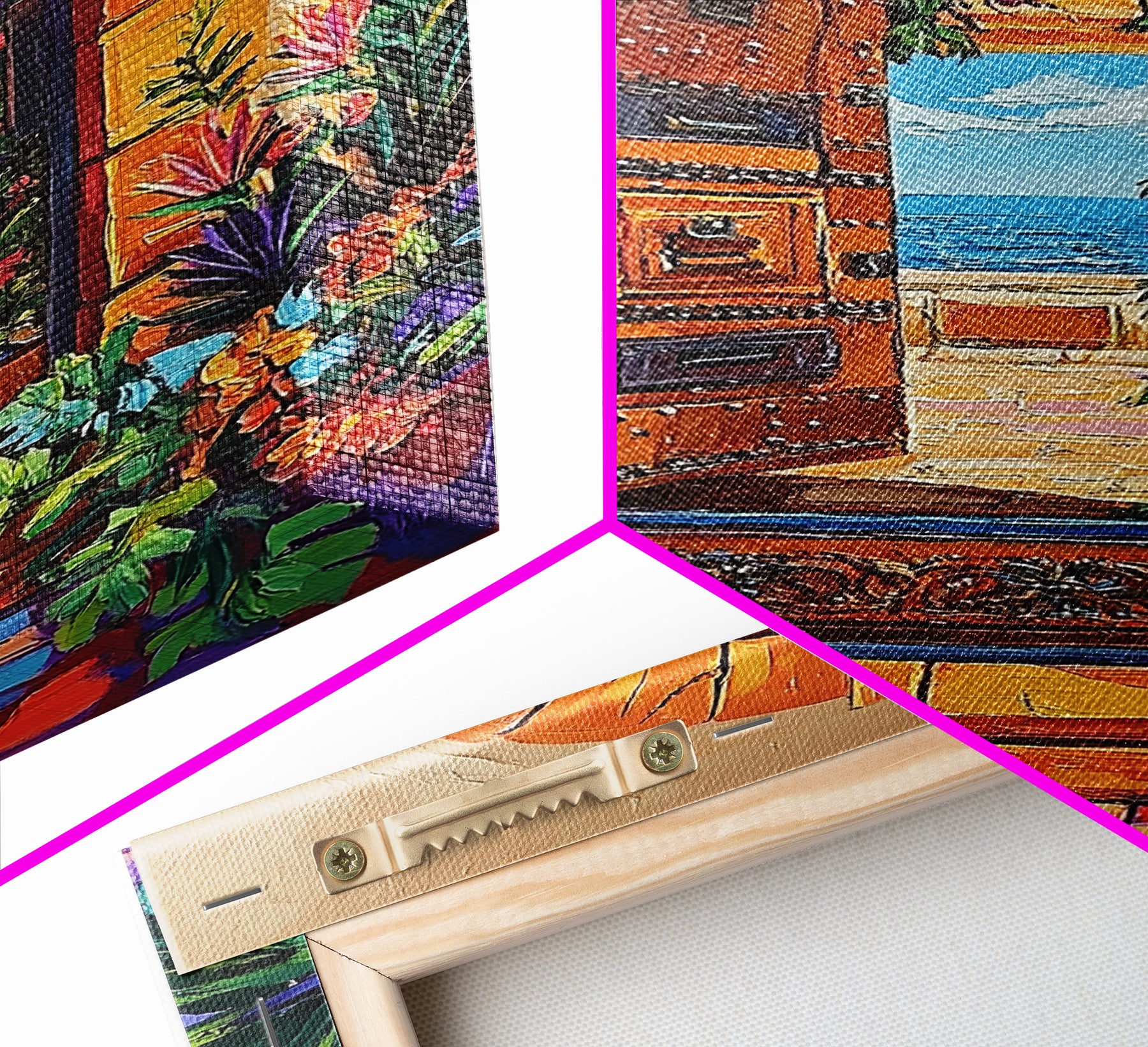 Doorway Ocean, View, Escape, Framed Canvas Print, Mediterranean coastal decor, boho travel wall art, vibrant entryway art, hallway decor