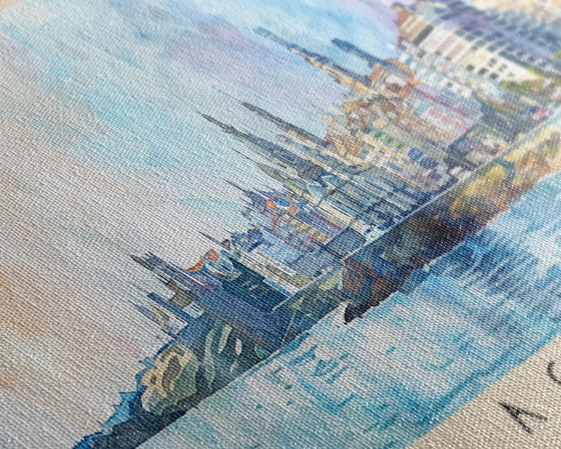 Most of our canvases are made in the USA, with the exception of canvases ordered with the light oak unstained frames, and any large canvases (24x48, 30x60, 16x48 and 20x60) ordered WITH a frame. These are temporarily made in and shipped from Europe, while we try to find a more consistent supplier in the USA.