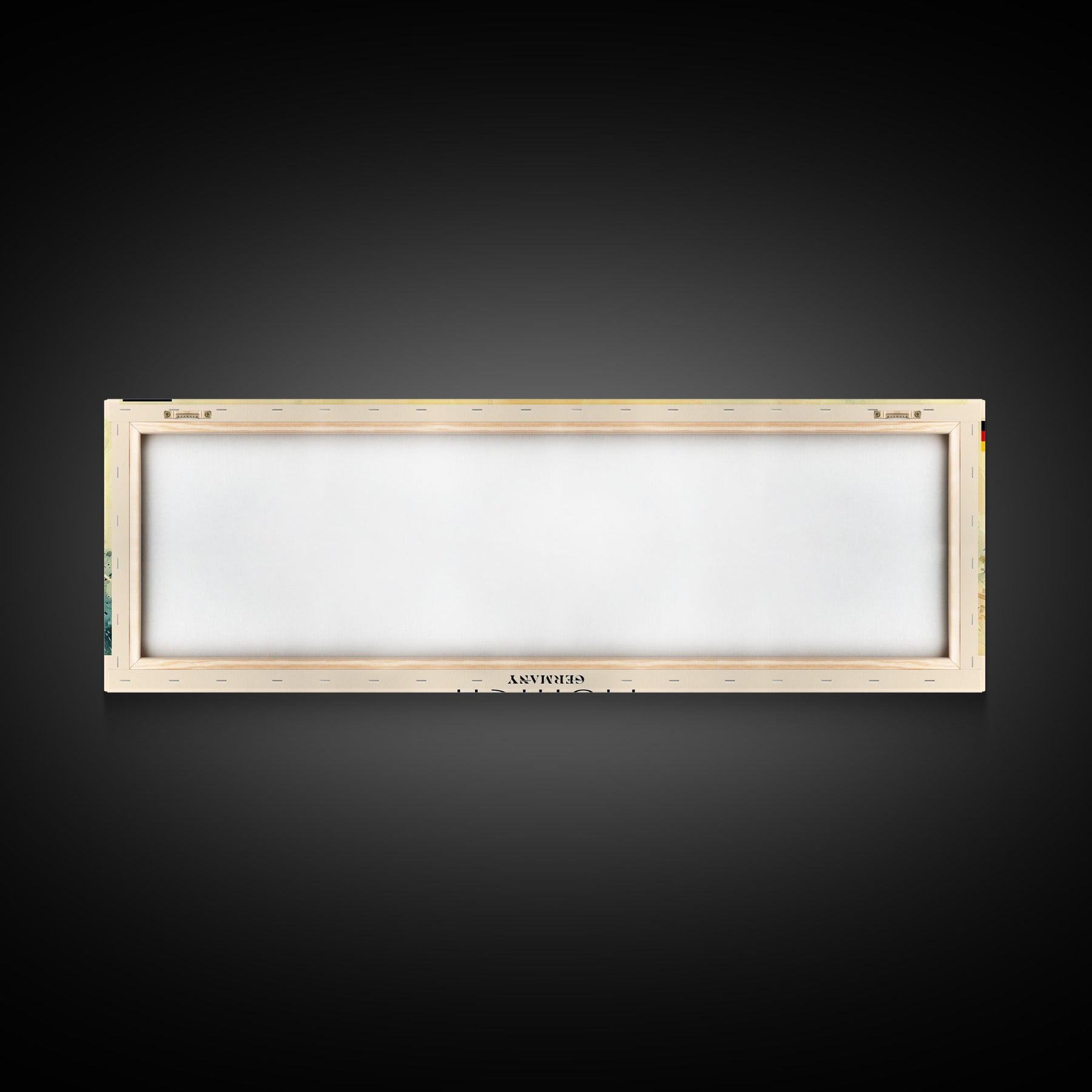 Most of our canvases are made in the USA, with the exception of canvases ordered with the light oak unstained frames, and any large canvases (24x48, 30x60, 16x48 and 20x60) ordered WITH a frame. These are temporarily made in and shipped from Europe, while we try to find a more consistent supplier in the USA.