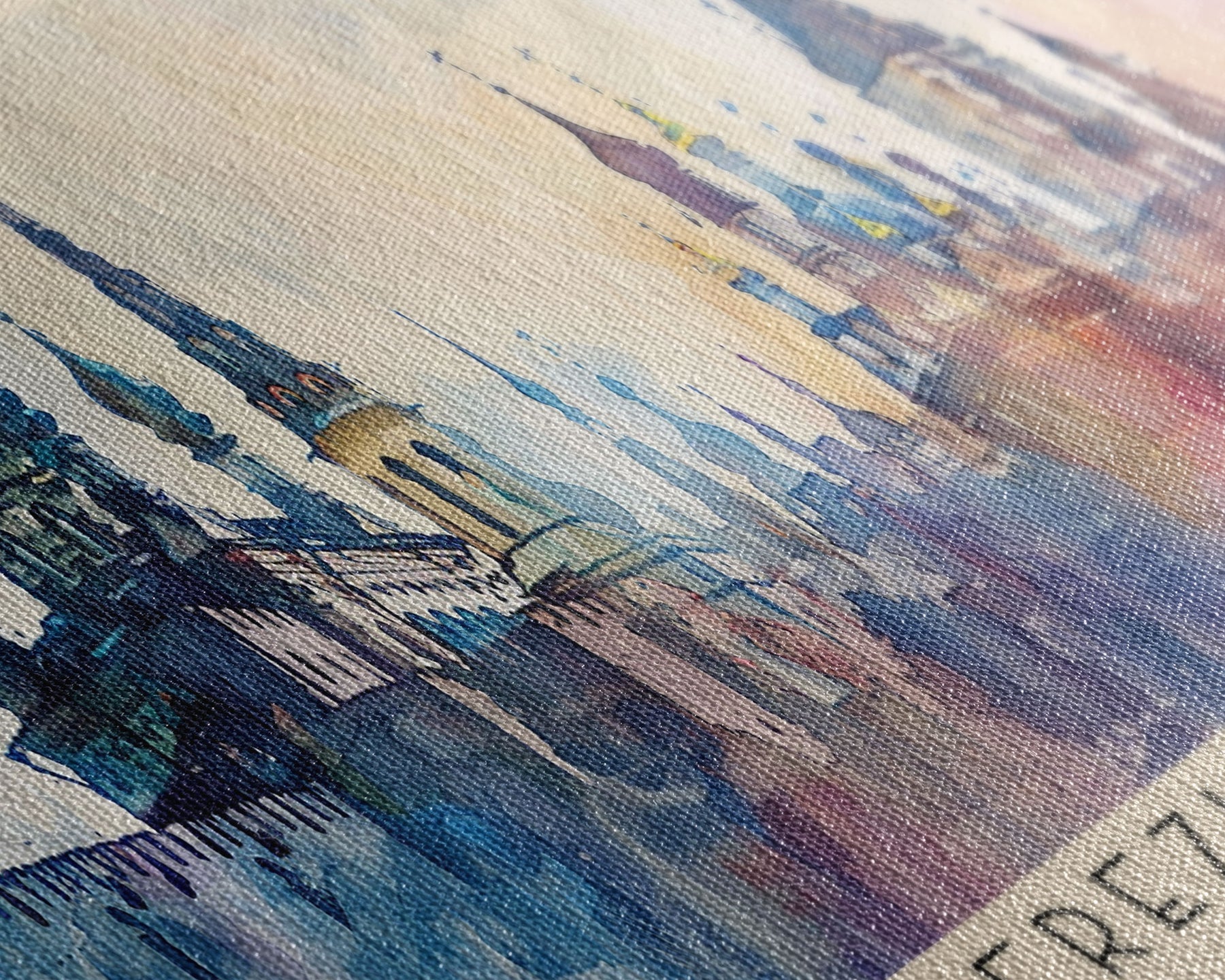 Most of our canvases are made in the USA, with the exception of canvases ordered with the light oak unstained frames, and any large canvases (24x48, 30x60, 16x48 and 20x60) ordered WITH a frame. These are temporarily made in and shipped from Europe, while we try to find a more consistent supplier in the USA.