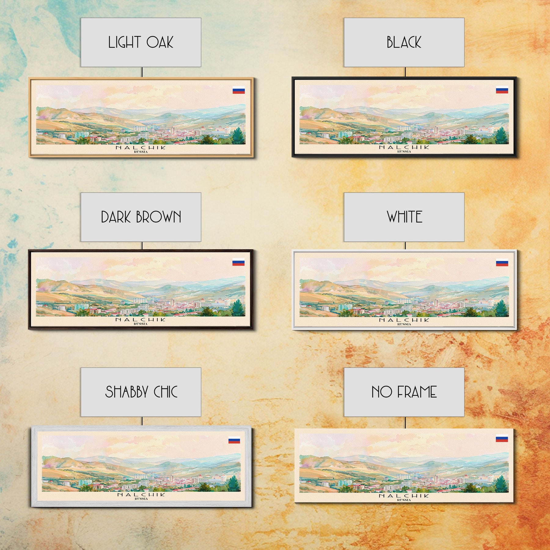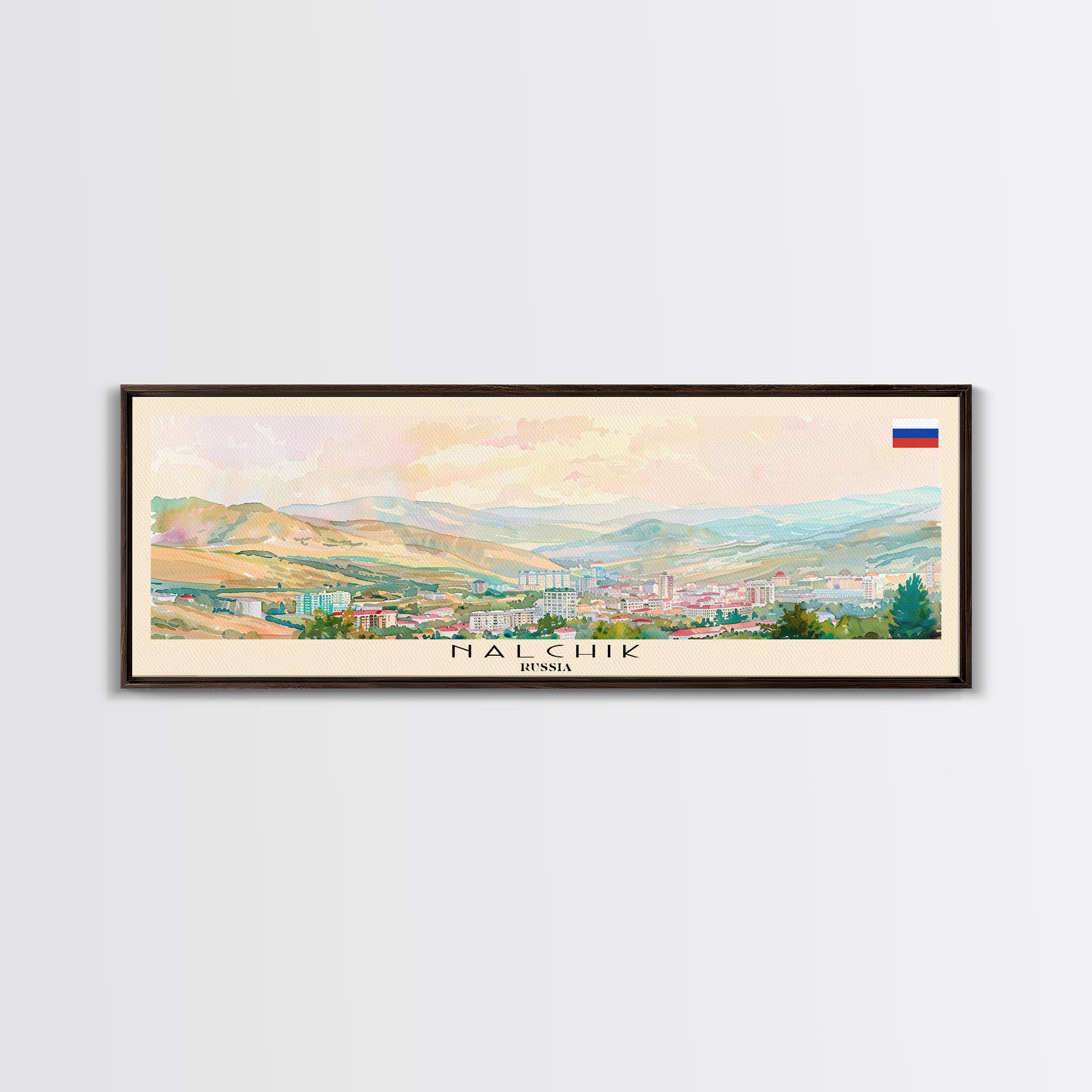 Nalchik Russia Panoramic Travel Poster, Framed Canvas Print or Metal Wall Art, Travel Art, Home Decor, Panoramic Painting, Midcentury Art