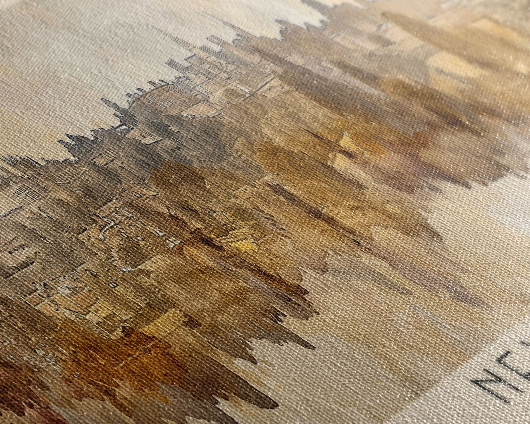 Most of our canvases are made in the USA, with the exception of canvases ordered with the light oak unstained frames, and any large canvases (24x48, 30x60, 16x48 and 20x60) ordered WITH a frame. These are temporarily made in and shipped from Europe, while we try to find a more consistent supplier in the USA.
