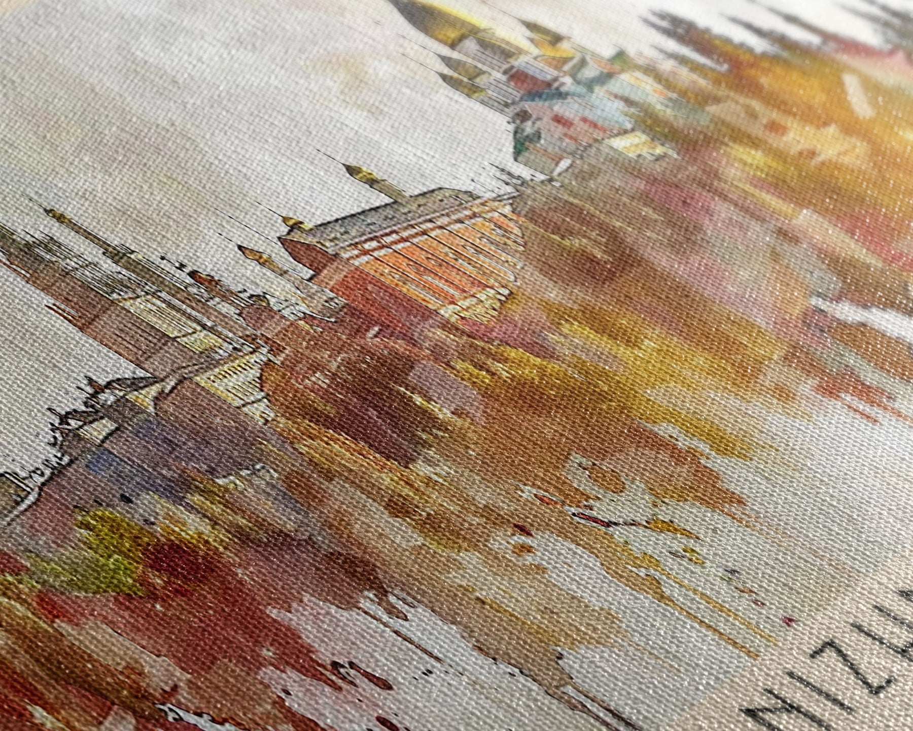 Most of our canvases are made in the USA, with the exception of canvases ordered with the light oak unstained frames, and any large canvases (24x48, 30x60, 16x48 and 20x60) ordered WITH a frame. These are temporarily made in and shipped from Europe, while we try to find a more consistent supplier in the USA.