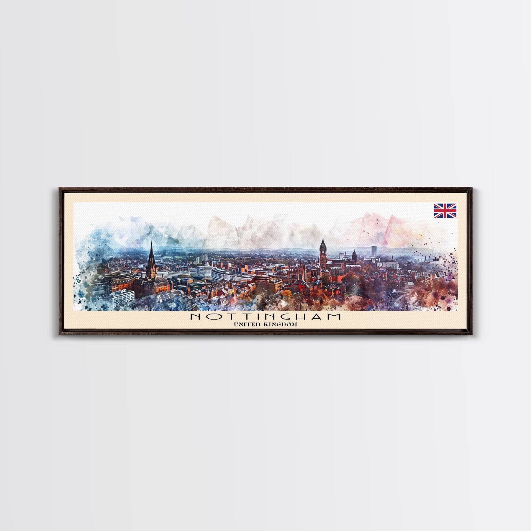 Nottingham United Kingdom Wall Art, Panoramic Travel Poster, Panoramic Framed Canvas Print, City Wall Art, Wall Hanging Home Decor, Travel Art