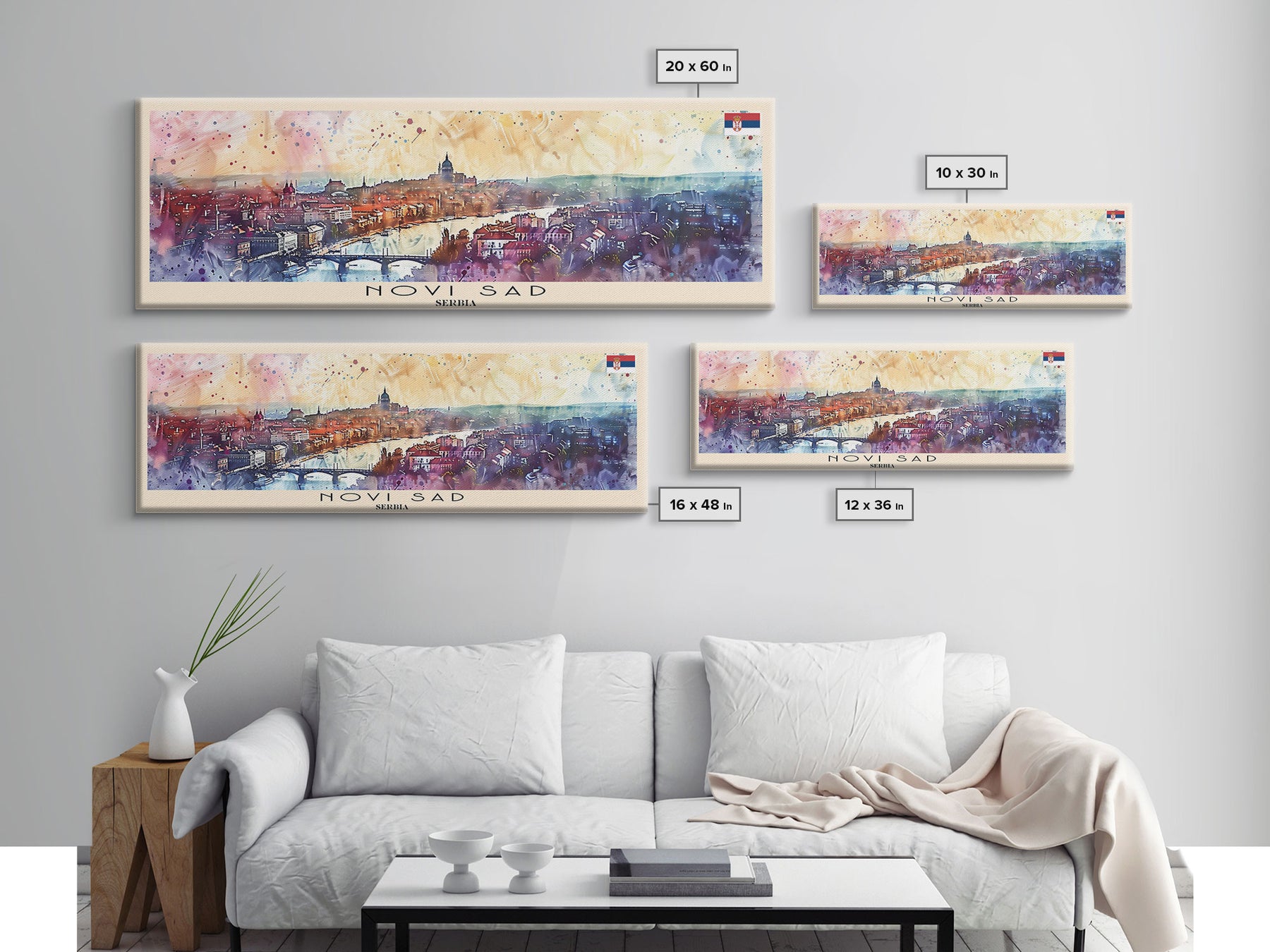 Novi Sad Serbia Travel Art, City Art, Framed Canvas Print or Metal Wall Art, Europe Travel Poster, Panoramic Wall Art, Extra Wide Wall Art
