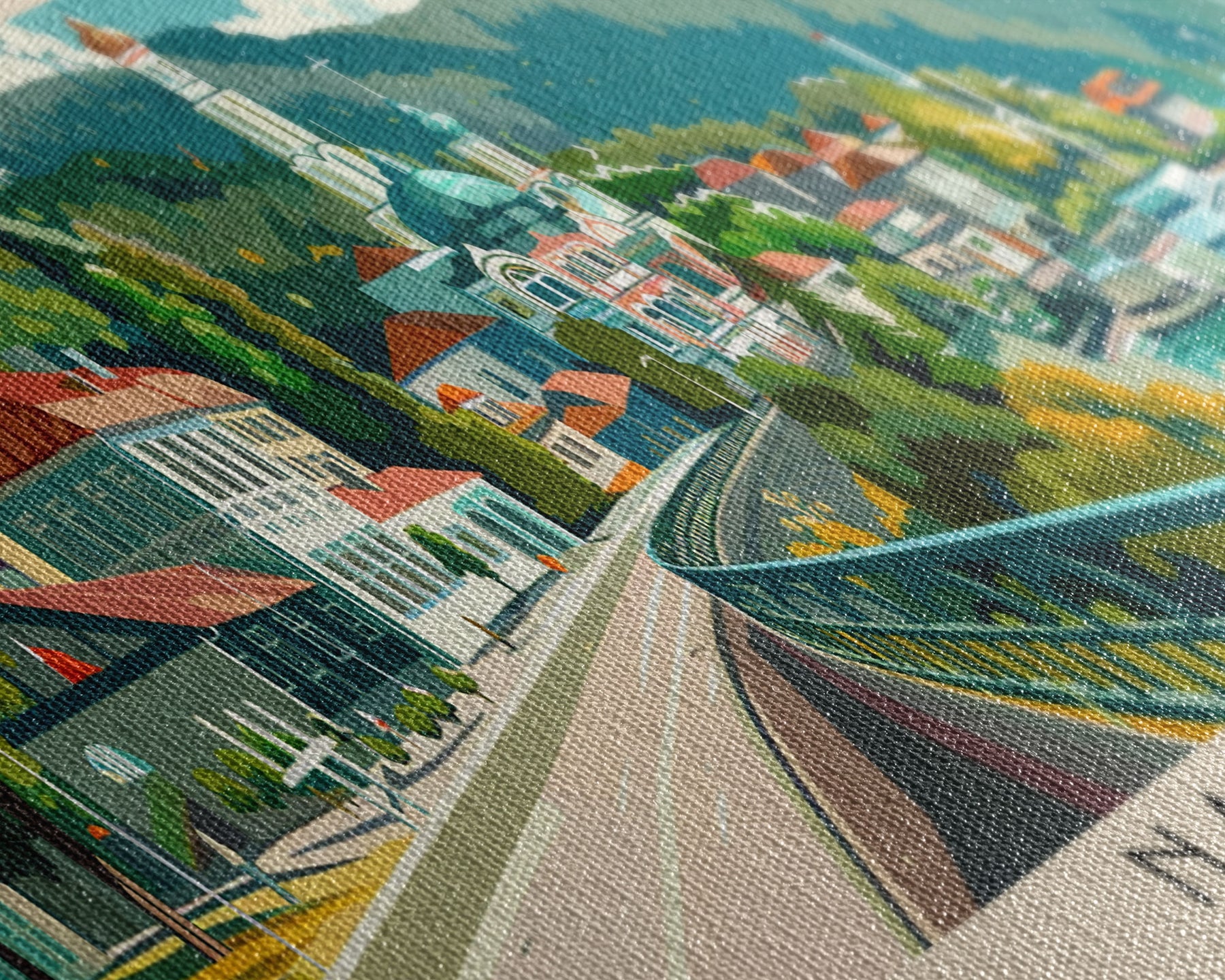 Nalchik Russia Panoramic Travel Poster, Framed Canvas Print or Metal Wall Art, Travel Art, Home Decor, Panoramic Painting, Midcentury Art