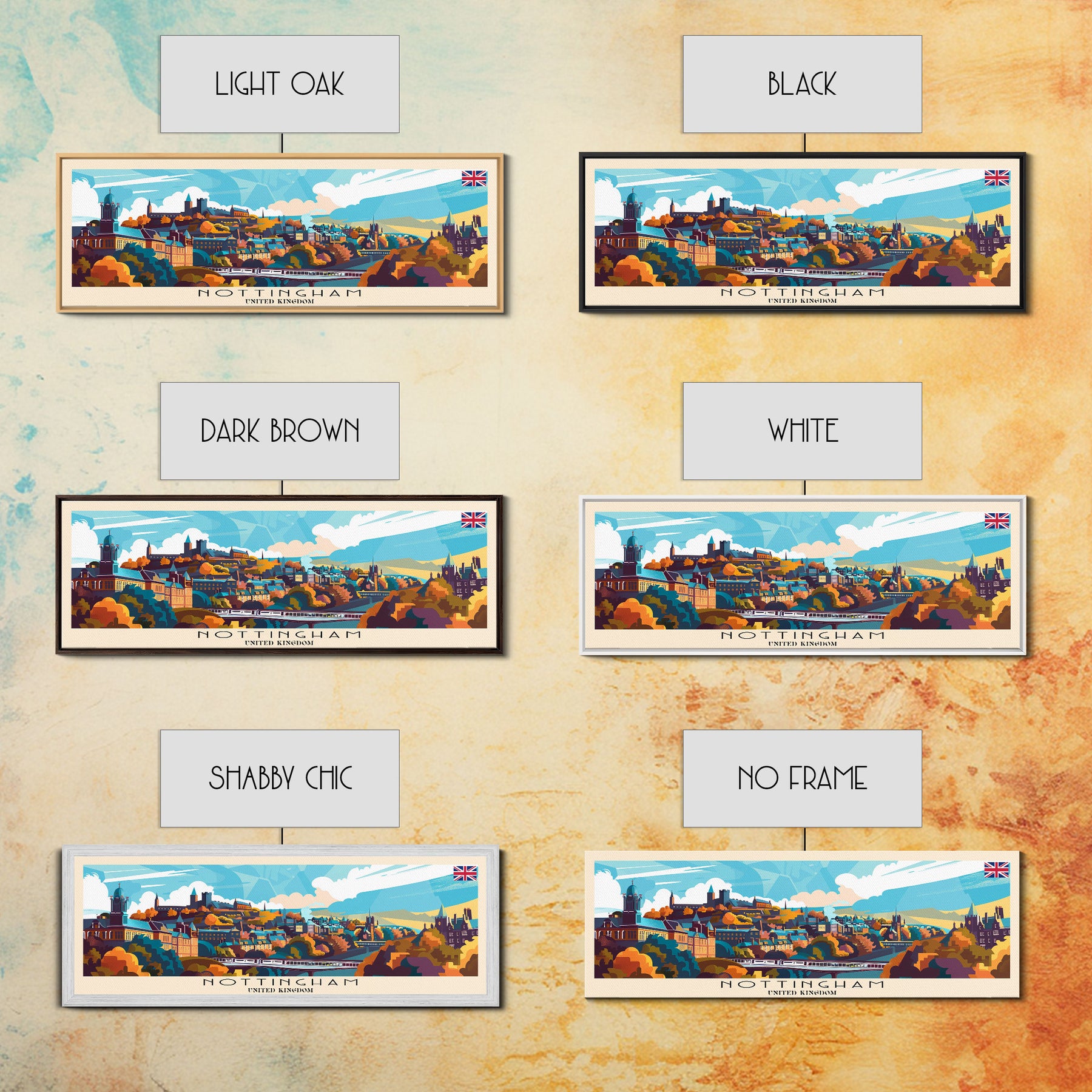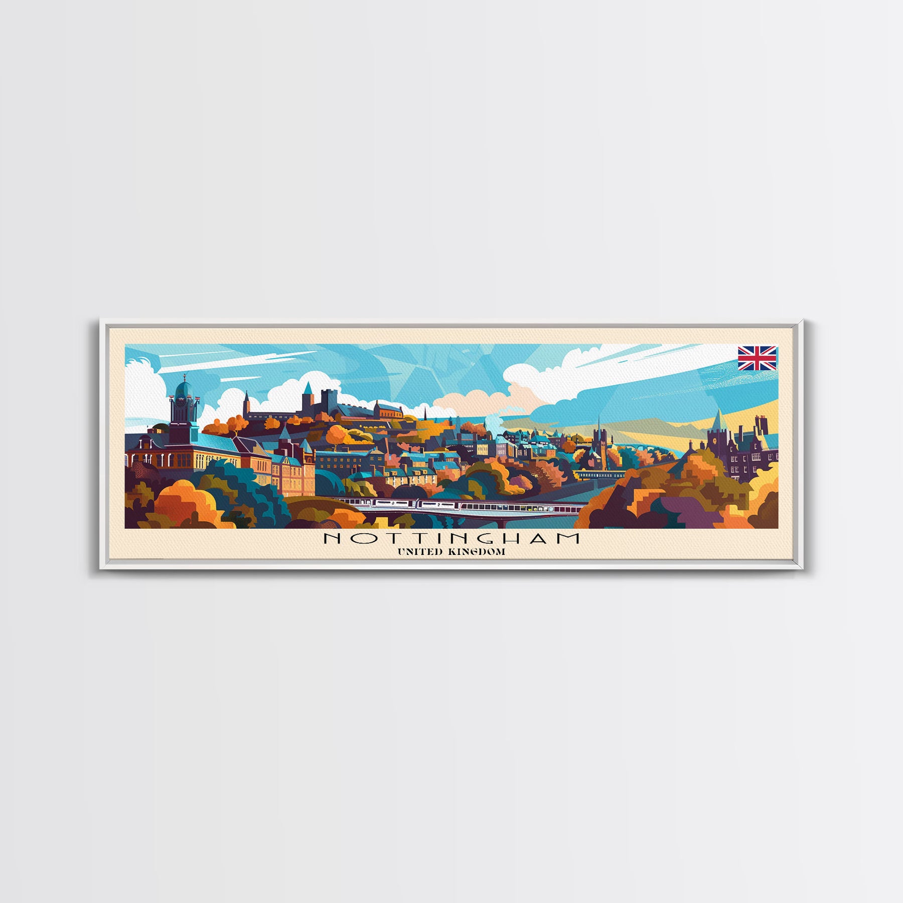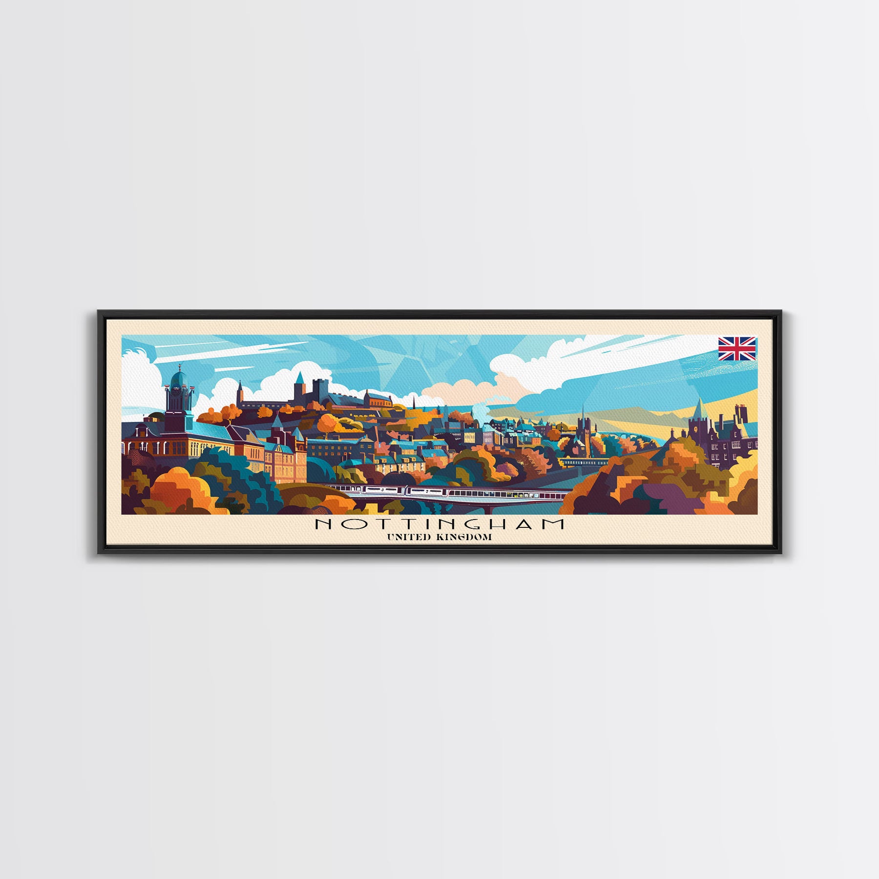 Nottingham United Kingdom Wall Art, Panoramic Travel Poster, Panoramic Framed Canvas Print, City Wall Art, Wall Hanging Home Decor, Travel Art