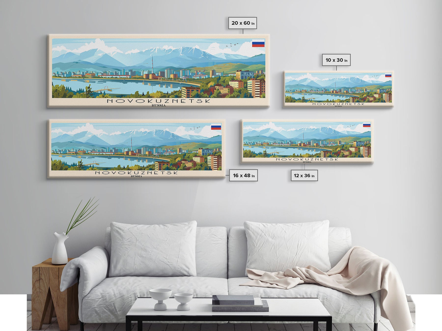 Novokuznetsk Russia Panoramic Travel Poster, Framed Canvas Print or Metal Wall Art, Travel Art, Home Decor, Panoramic Painting, Midcentury Art
