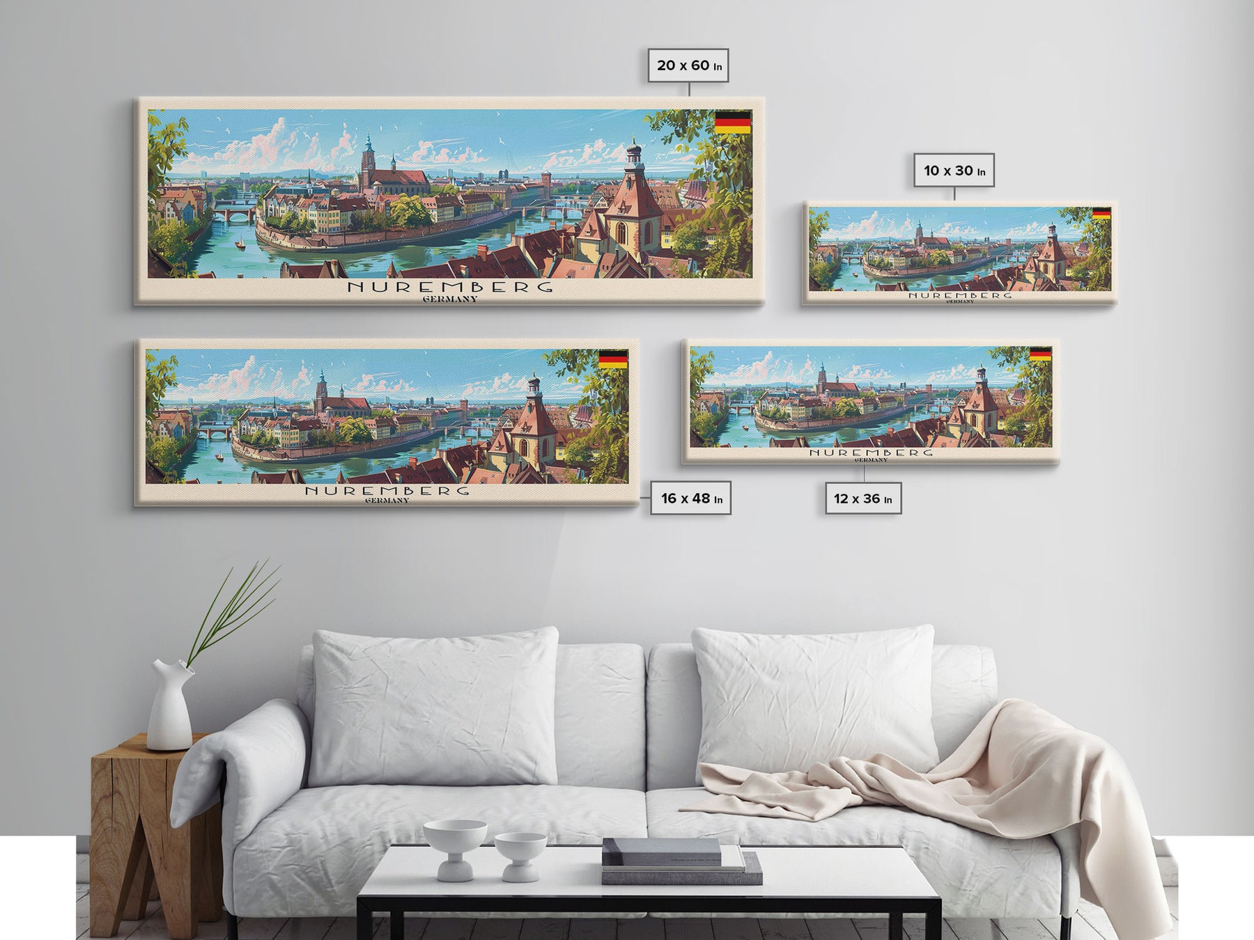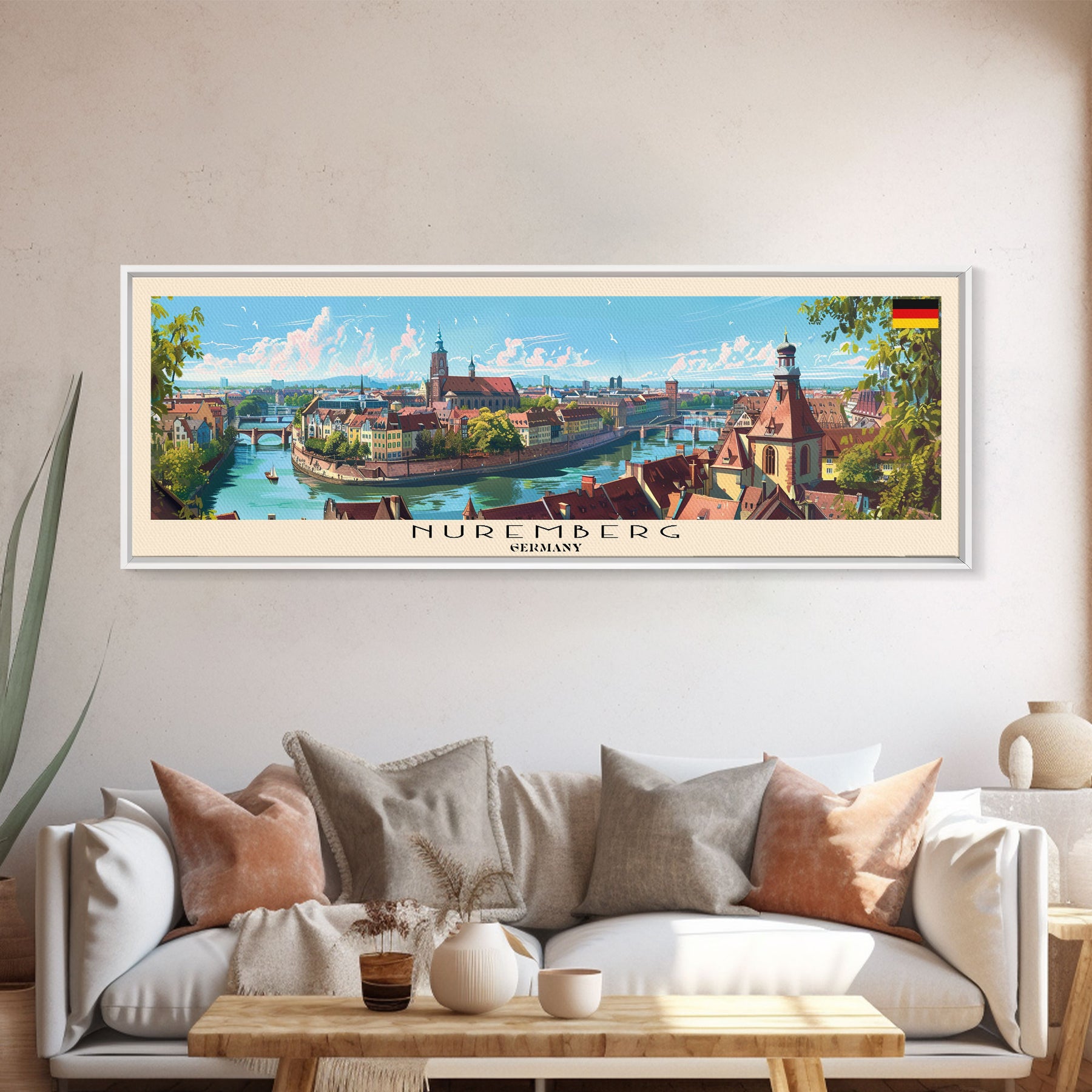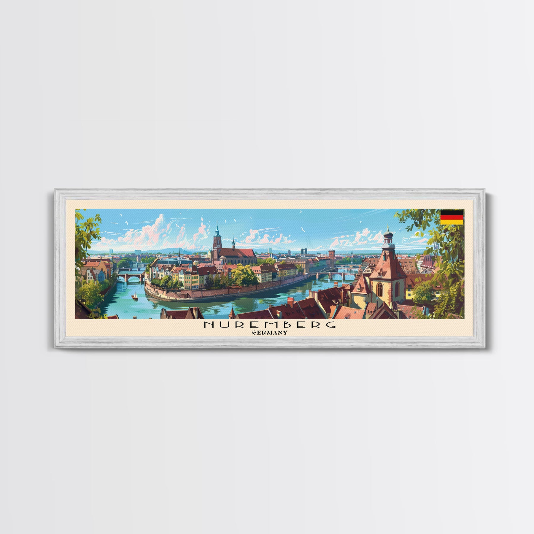 Nuremberg Germany Travel Art, City Art, Framed Canvas Print or Metal Wall Art, Europe Travel Poster, Panoramic Wall Art, Extra Wide Wall Art
