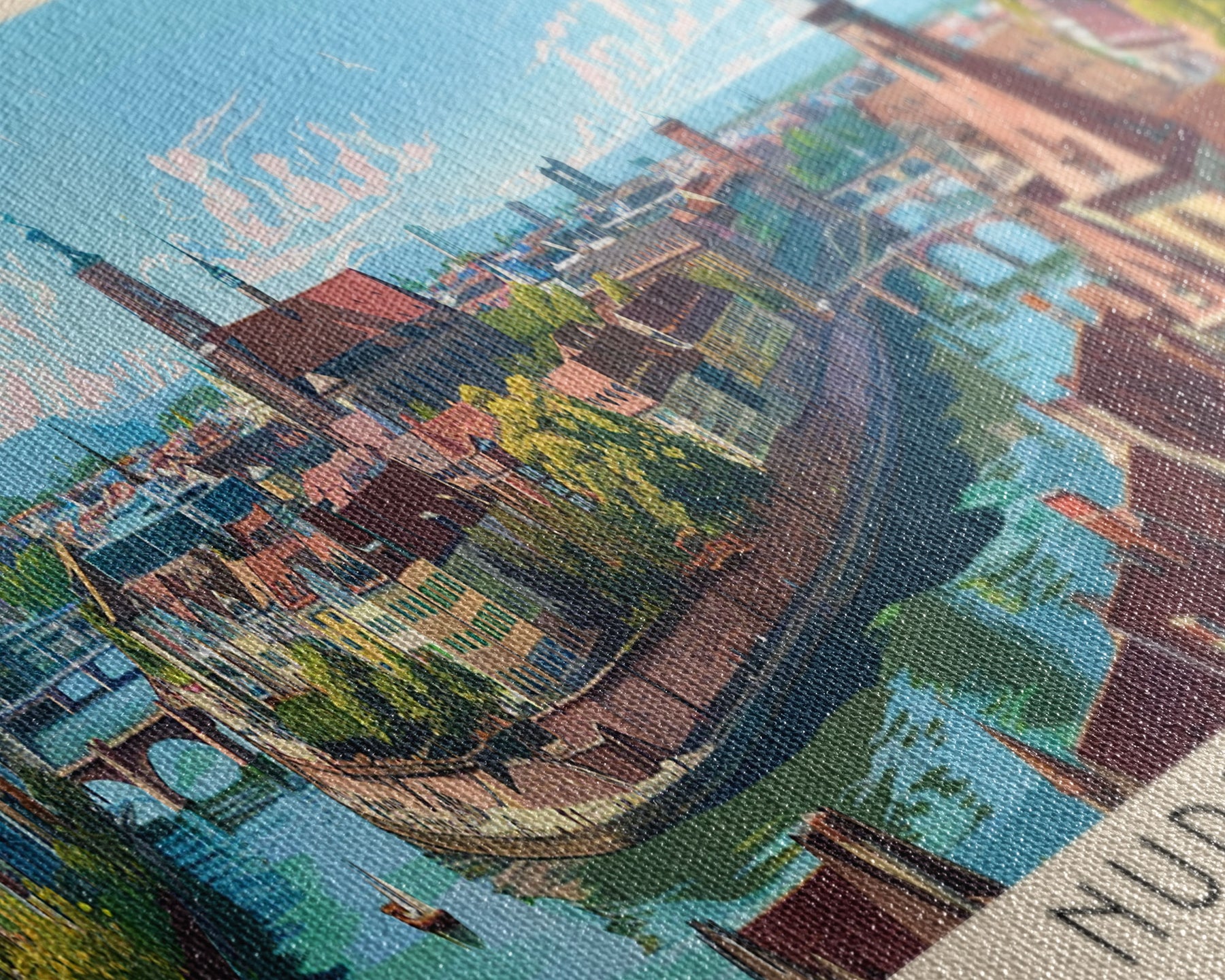 Most of our canvases are made in the USA, with the exception of canvases ordered with the light oak unstained frames, and any large canvases (24x48, 30x60, 16x48 and 20x60) ordered WITH a frame. These are temporarily made in and shipped from Europe, while we try to find a more consistent supplier in the USA.