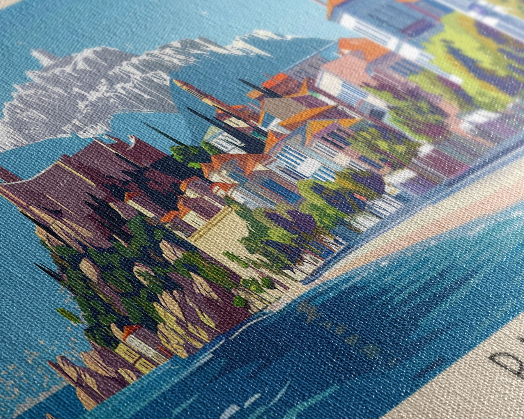 Most of our canvases are made in the USA, with the exception of canvases ordered with the light oak unstained frames, and any large canvases (24x48, 30x60, 16x48 and 20x60) ordered WITH a frame. These are temporarily made in and shipped from Europe, while we try to find a more consistent supplier in the USA.