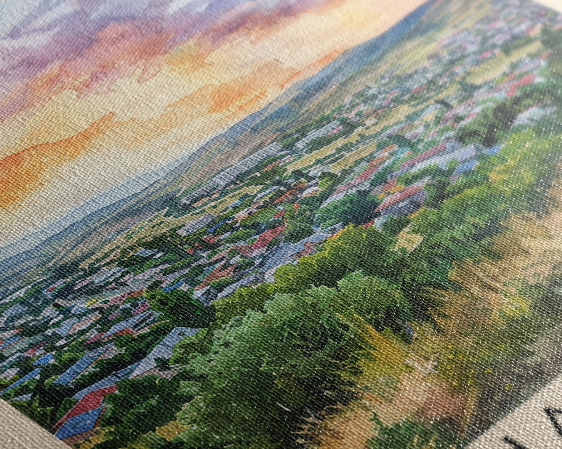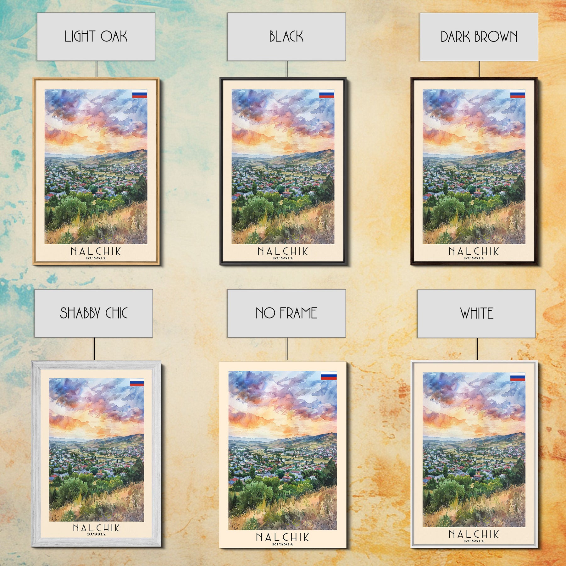 Nalchik Russia Travel Poster Framed Canvas Print, Sunset Watercolor Painting, Scenic Art, Vacation Wall Art, Living Room Decor, Unique Art
