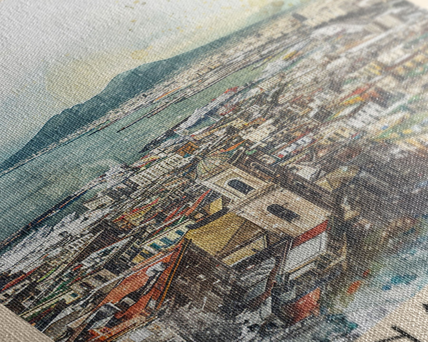 Naples Italy Framed Canvas Print, Scenic Travel Poster, Watercolor Painting, Coastal Wall Art, Home Decor, Vacation Art, Unique Art