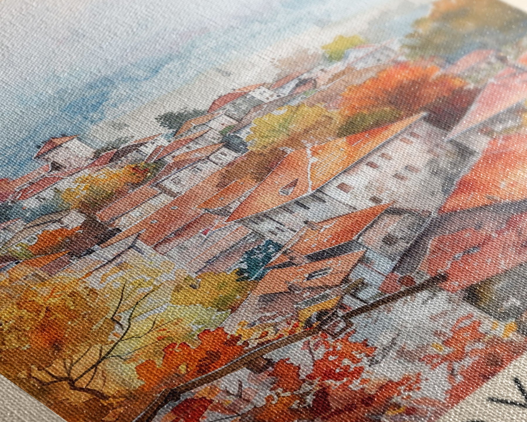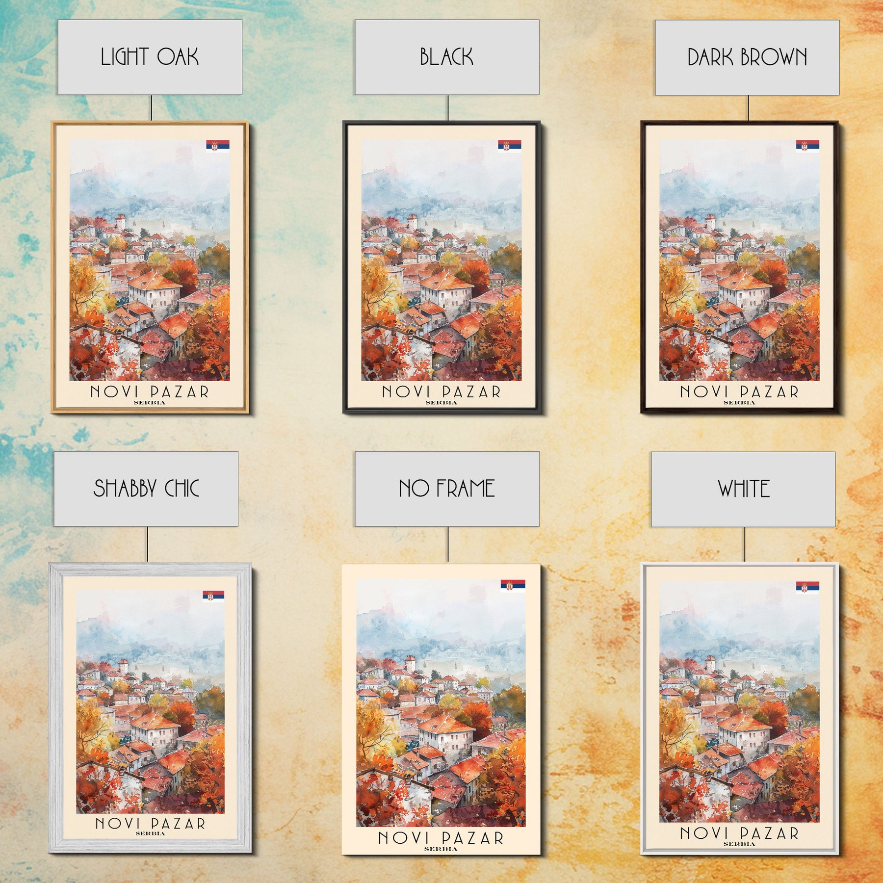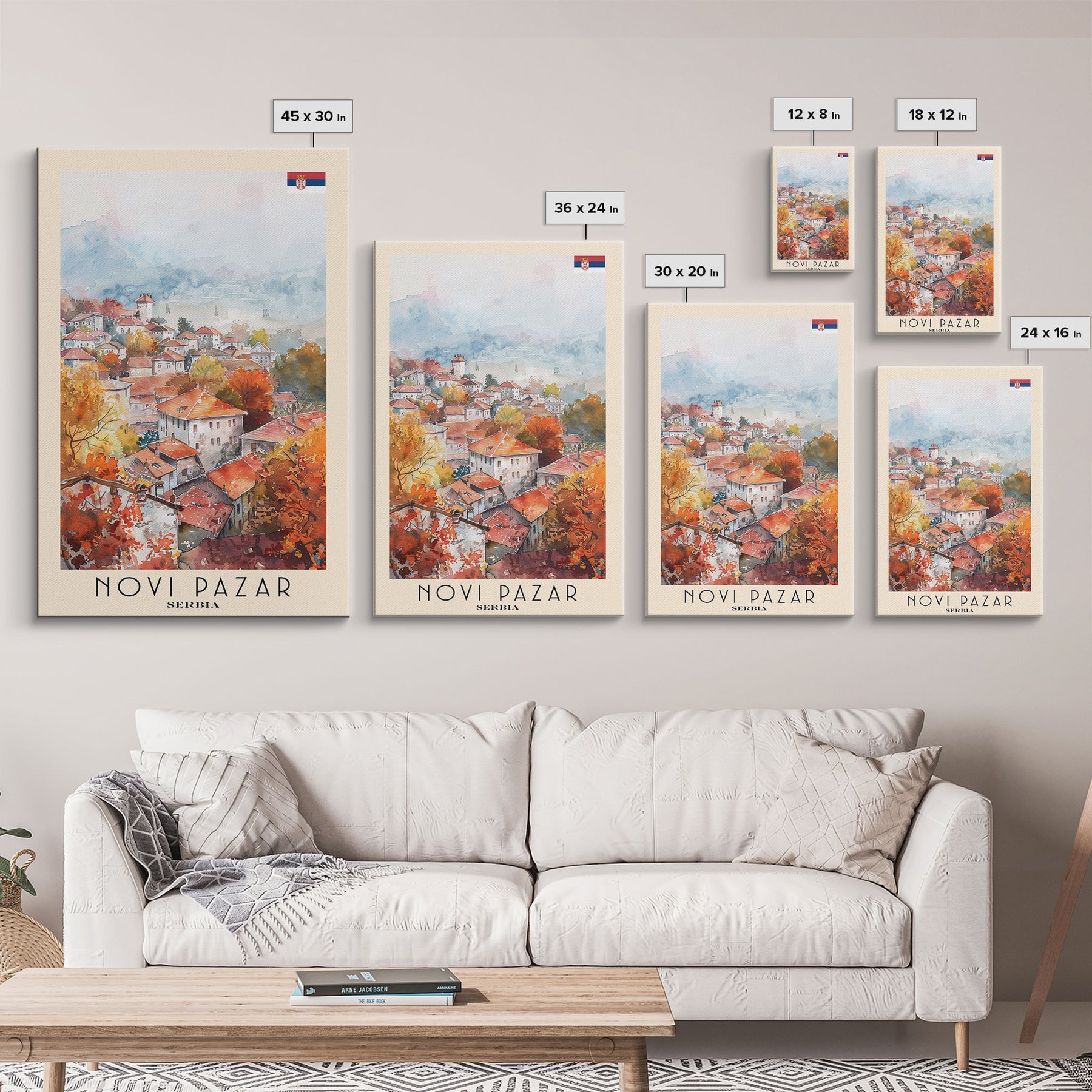 Novi Pazar Serbia Travel Poster Framed Canvas Print, Watercolor Painting, Scenic Wall Art, Home Decor, Serbian Landscape, Cultural Art