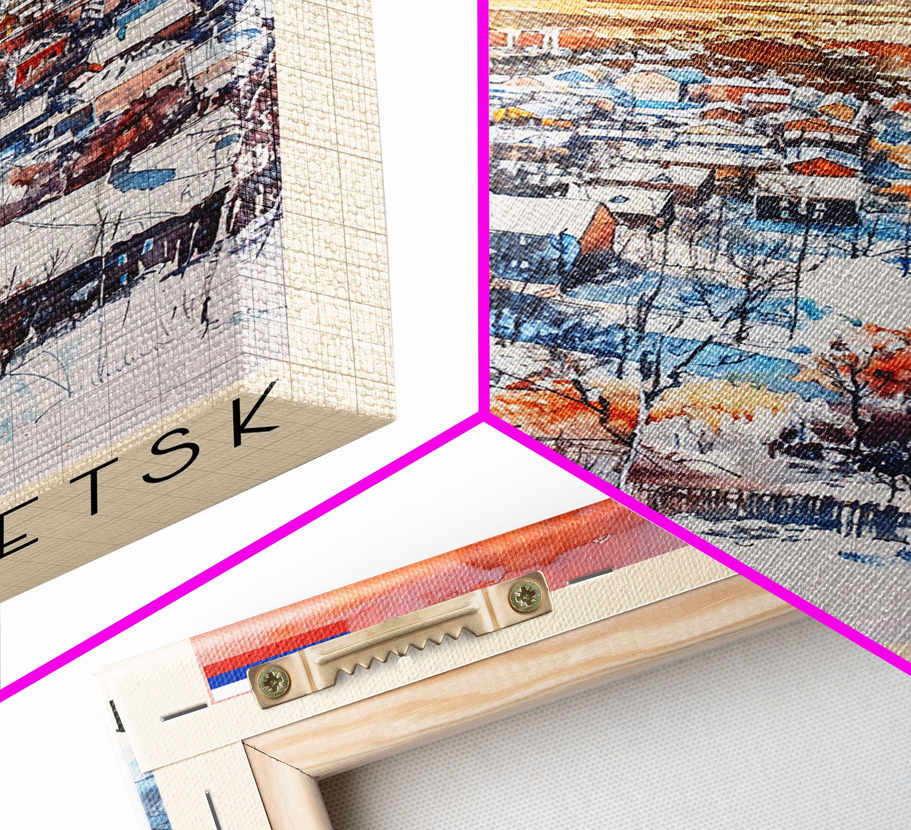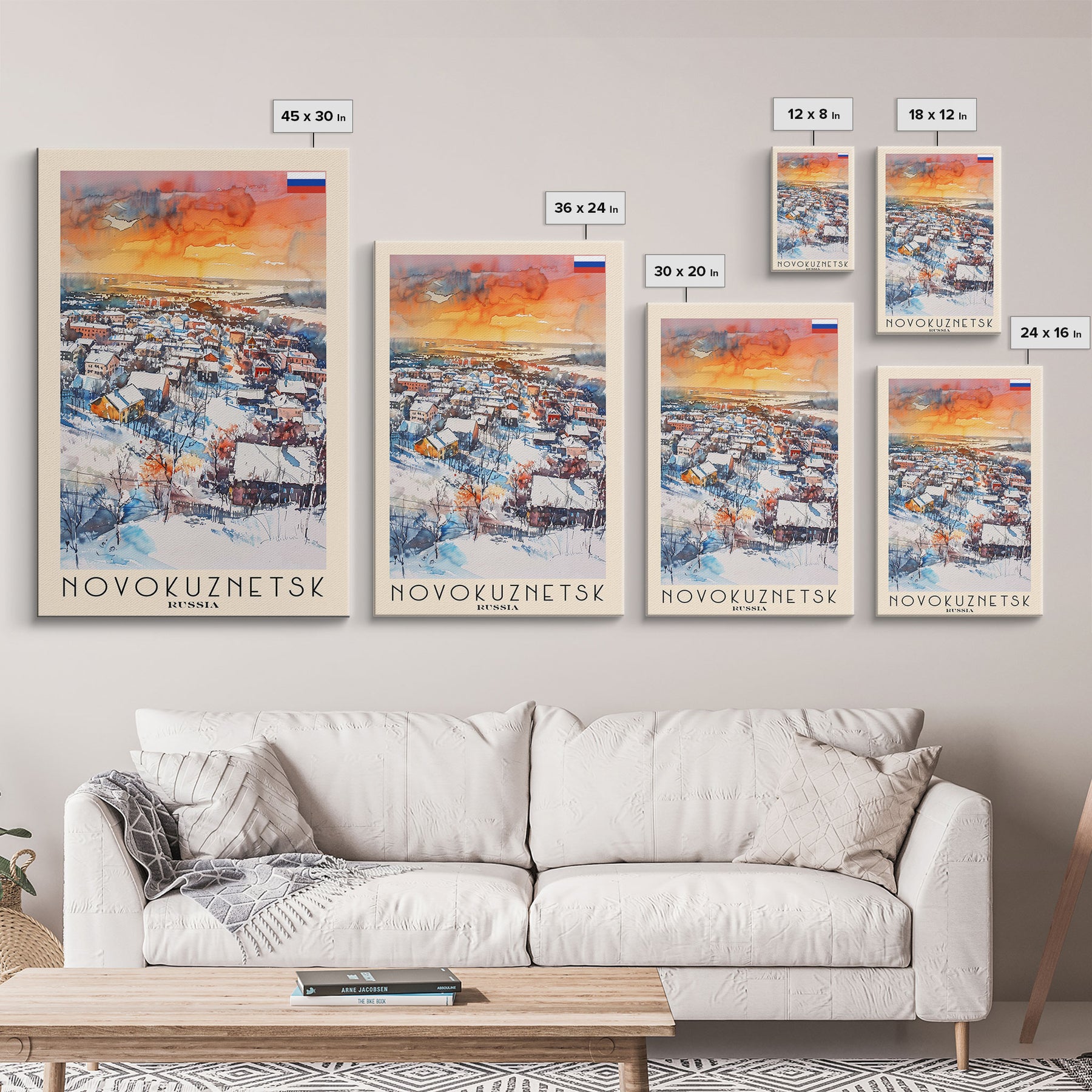 Novokuznetsk Russia Travel Poster Framed Canvas Print, Watercolor Painting, Scenic Wall Art, Home Decor, Russian Landscape, Urban Art