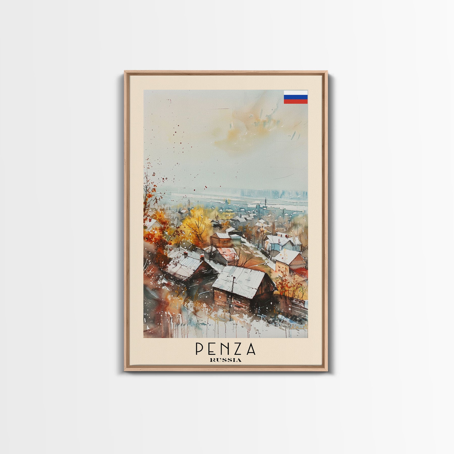 Penza Russia Travel Poster Framed Canvas Print, Watercolor Painting, Urban Wall Art, Home Decor, Russian Cityscape, Contemporary Art