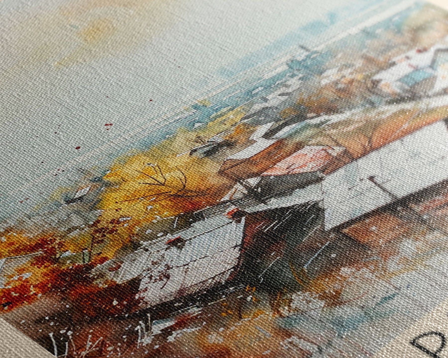 Most of our canvases are made in the USA, with the exception of canvases ordered with the light oak unstained frames, and any large canvases (24x48, 30x60, 16x48 and 20x60) ordered WITH a frame. These are temporarily made in and shipped from Europe, while we try to find a more consistent supplier in the USA.