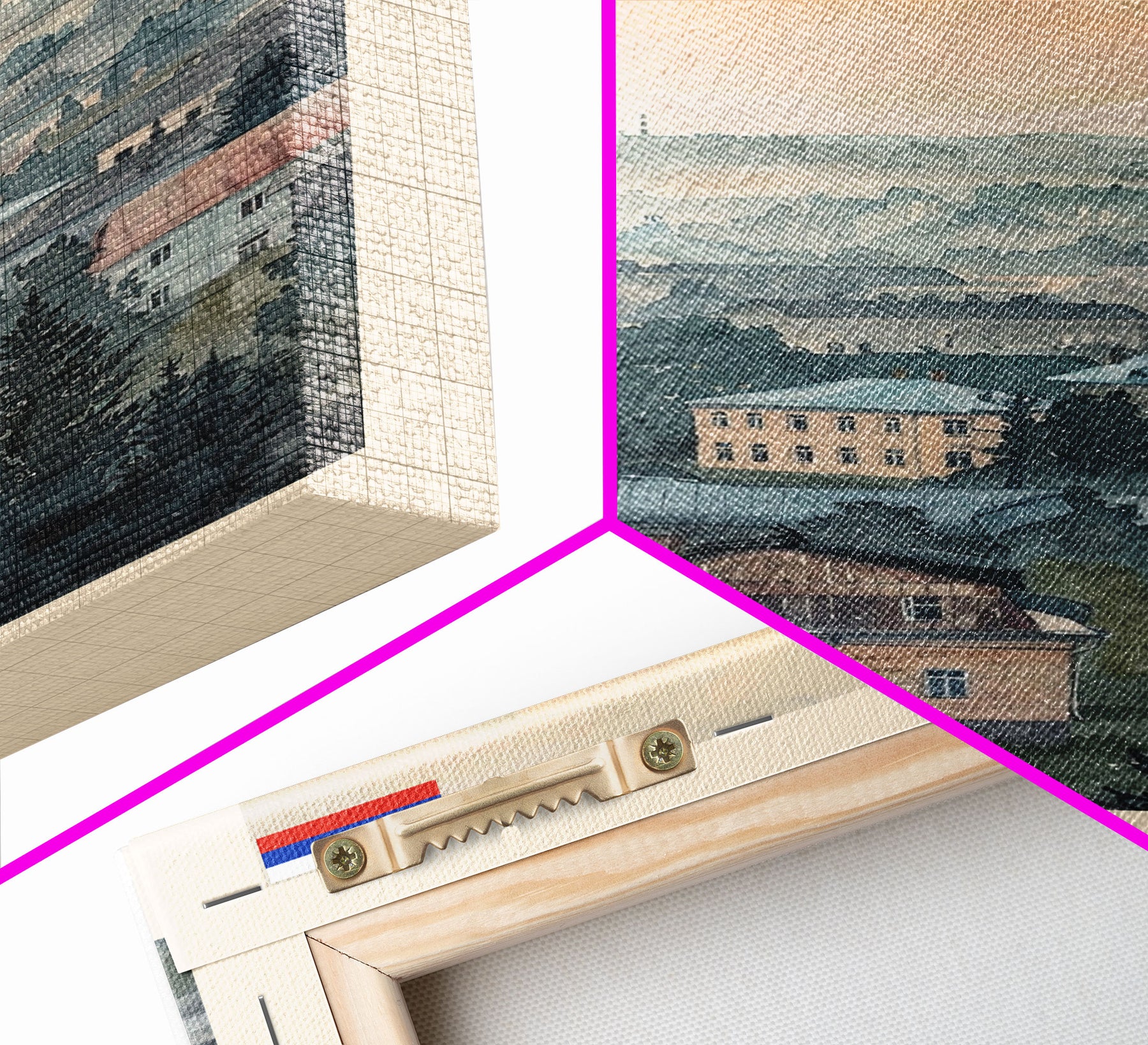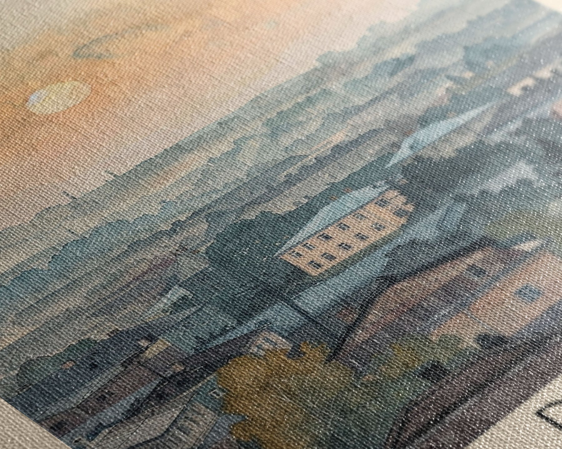 Most of our canvases are made in the USA, with the exception of canvases ordered with the light oak unstained frames, and any large canvases (24x48, 30x60, 16x48 and 20x60) ordered WITH a frame. These are temporarily made in and shipped from Europe, while we try to find a more consistent supplier in the USA.