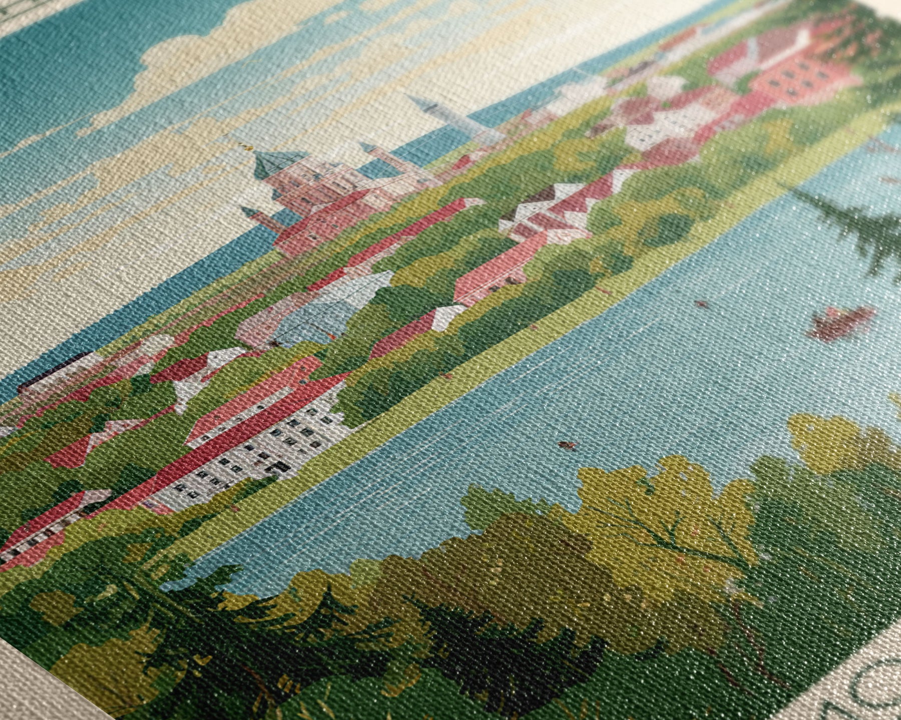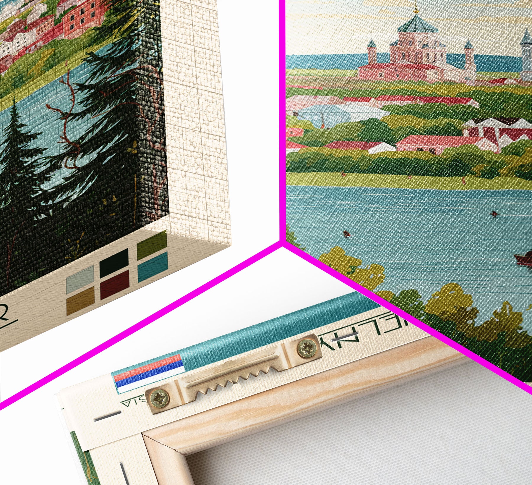Most of our canvases are made in the USA, with the exception of canvases ordered with the light oak unstained frames, and any large canvases (24x48, 30x60, 16x48 and 20x60) ordered WITH a frame. These are temporarily made in and shipped from Europe, while we try to find a more consistent supplier in the USA.