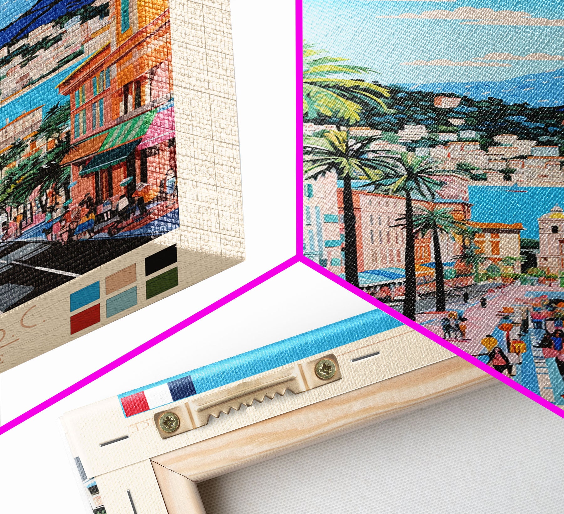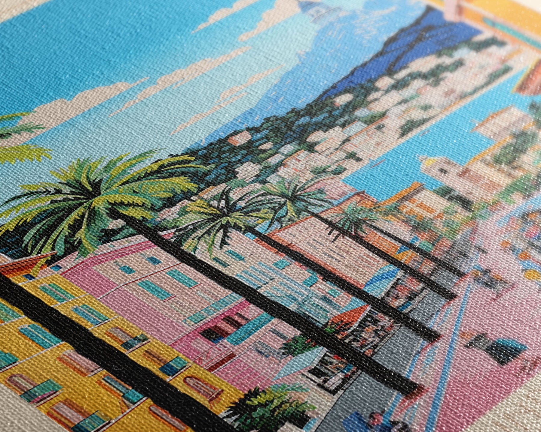 Most of our canvases are made in the USA, with the exception of canvases ordered with the light oak unstained frames, and any large canvases (24x48, 30x60, 16x48 and 20x60) ordered WITH a frame. These are temporarily made in and shipped from Europe, while we try to find a more consistent supplier in the USA.