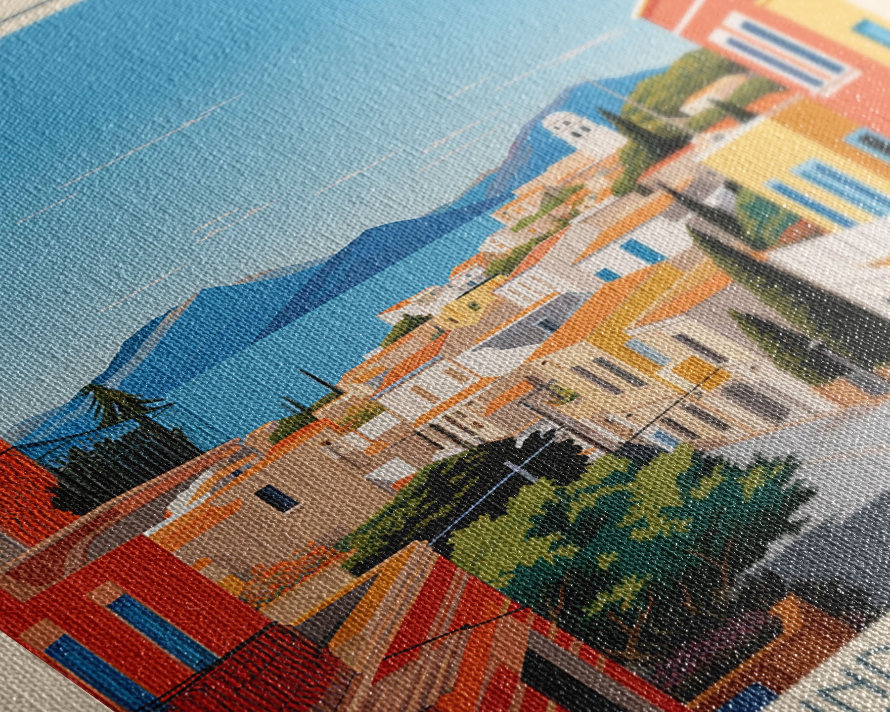 Most of our canvases are made in the USA, with the exception of canvases ordered with the light oak unstained frames, and any large canvases (24x48, 30x60, 16x48 and 20x60) ordered WITH a frame. These are temporarily made in and shipped from Europe, while we try to find a more consistent supplier in the USA.