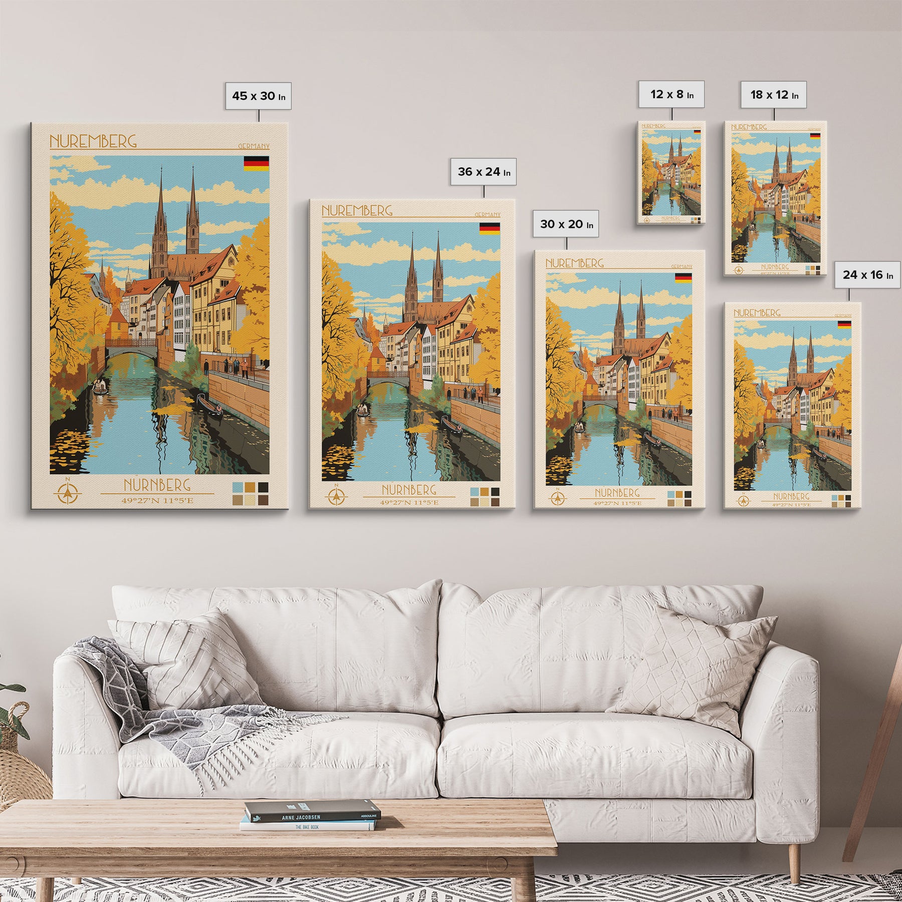 Nuremberg Germany Travel Poster Framed Canvas Print, Vintage Style, Pop Art Home Decor, Scenic Wall Art, Bedroom Decoration, Office Gift