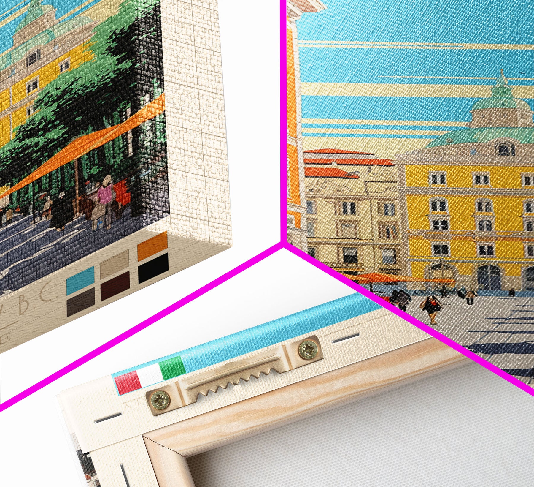 Most of our canvases are made in the USA, with the exception of canvases ordered with the light oak unstained frames, and any large canvases (24x48, 30x60, 16x48 and 20x60) ordered WITH a frame. These are temporarily made in and shipped from Europe, while we try to find a more consistent supplier in the USA.