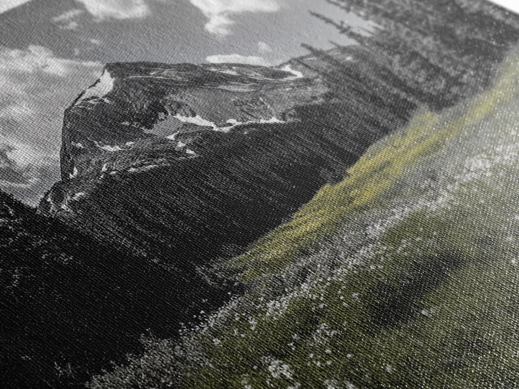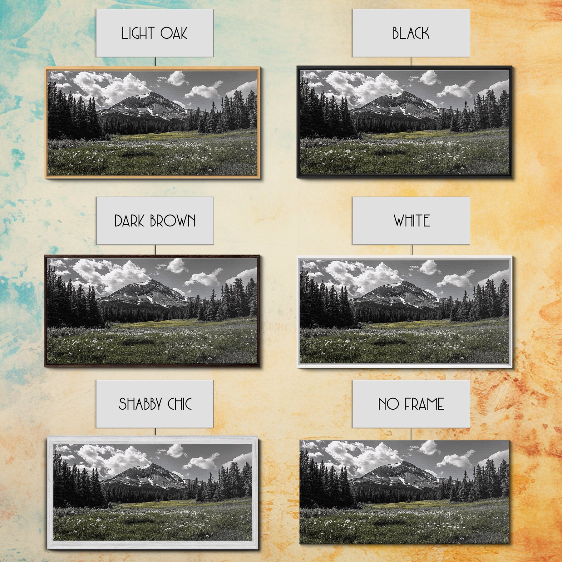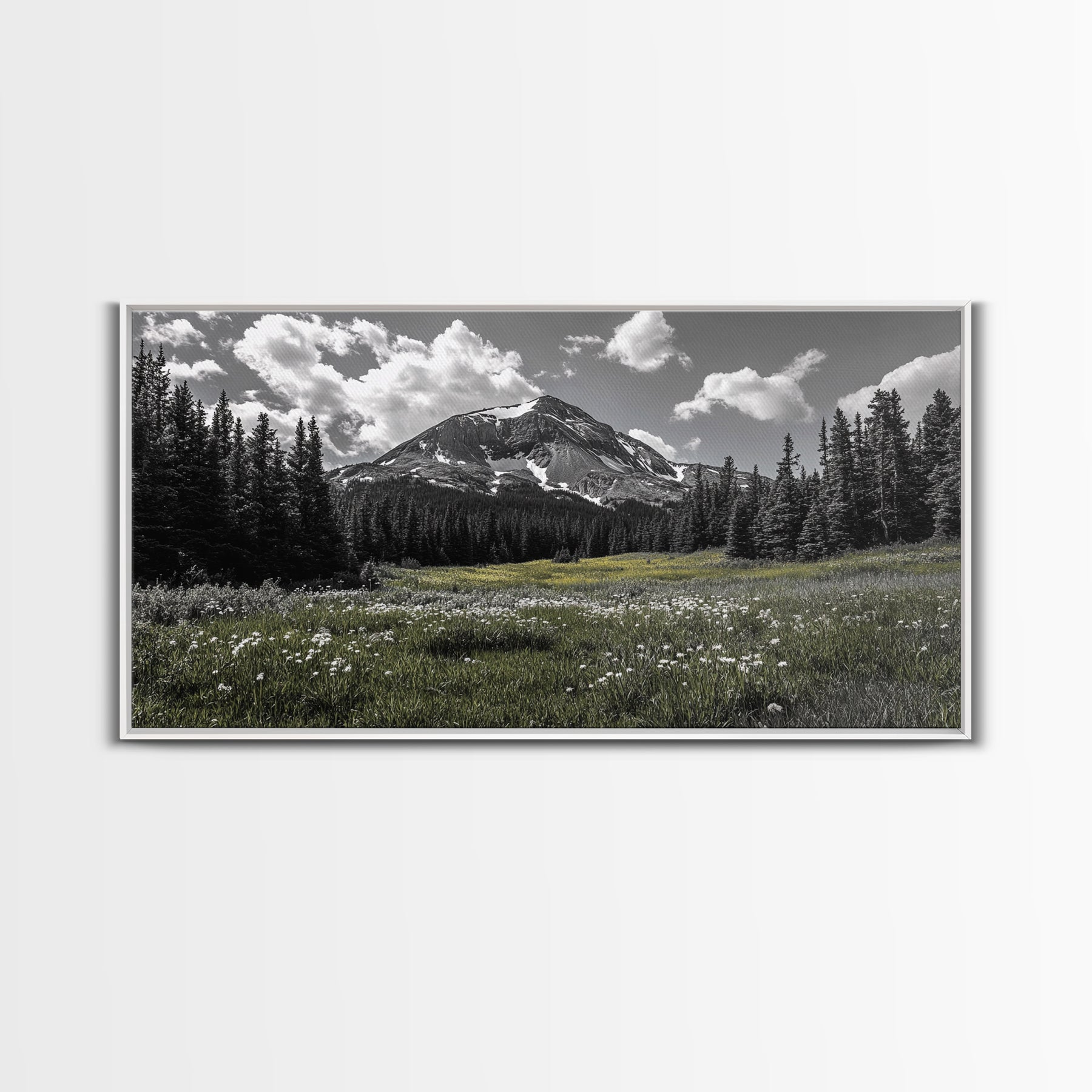 Mountain, Meadow, Wildflowers, Alpine meadow bloom and majestic peak on this Framed Canvas Print, serene Nature Wall Art for Entryway
