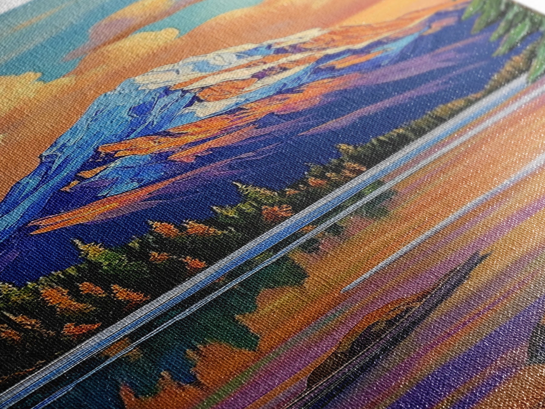 Most of our canvases are made in the USA, with the exception of canvases ordered with the light oak unstained frames, and any large canvases (24x48, 30x60, 16x48 and 20x60) ordered WITH a frame. These are temporarily made in and shipped from Europe, while we try to find a more consistent supplier in the USA.