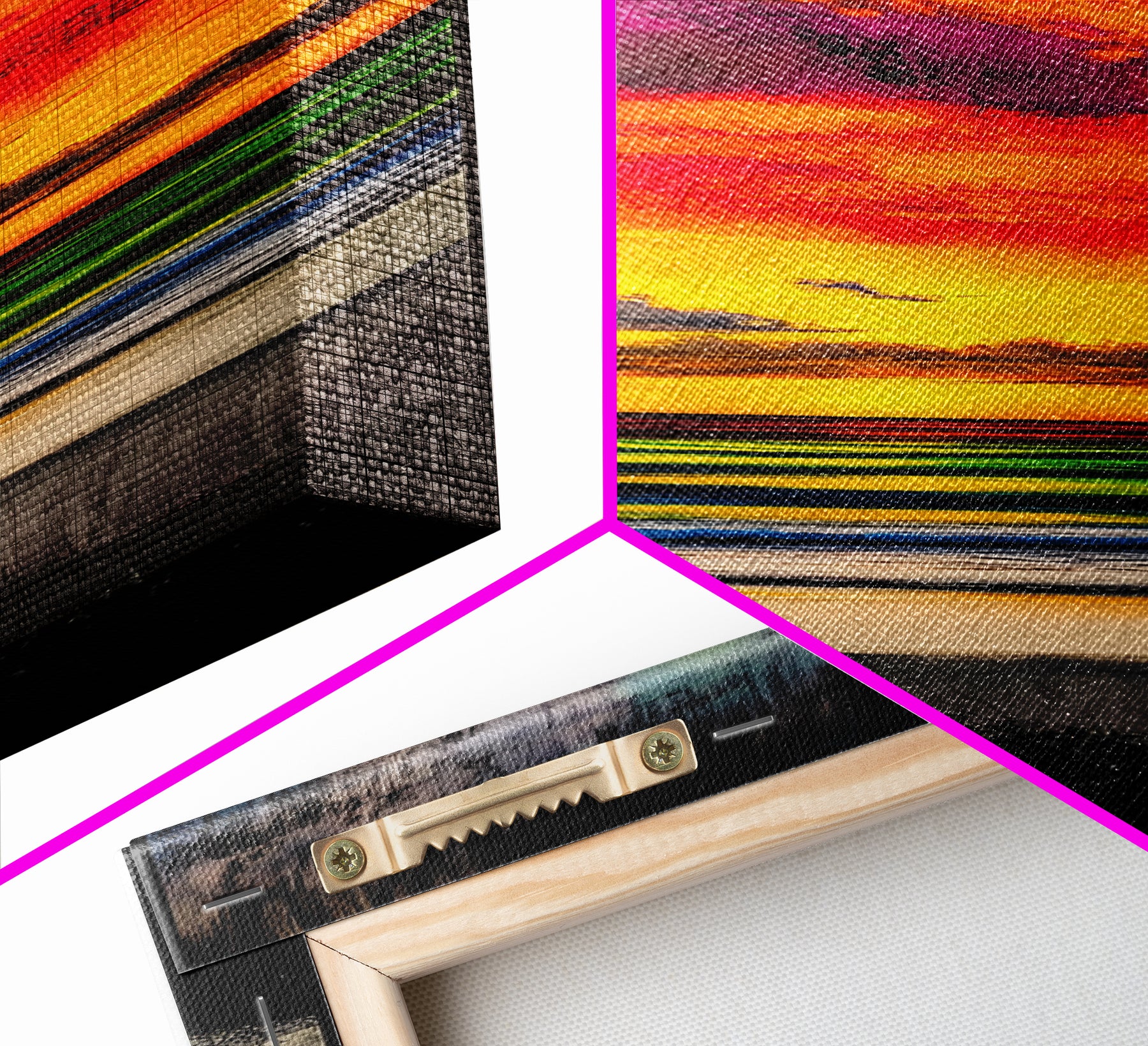 Hello and thank you for taking the time to view our modern high quality giclée artwork! We offer both posters and stretched canvas prints. Our posters are printed on Ultra Matte 60 lb / 230 GSM high quality photo paper, with a thickness of 10 mil. Our canvases are printed on museum grade 350 GSM canvas material with ECO friendly archival grade ink, then hand stretched and stapled over premium, FSC certified and shrink resistant frames. Designed and built to last a lifetime.