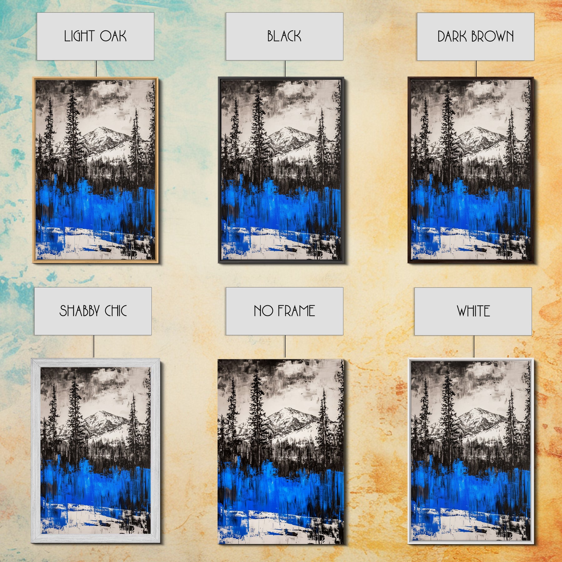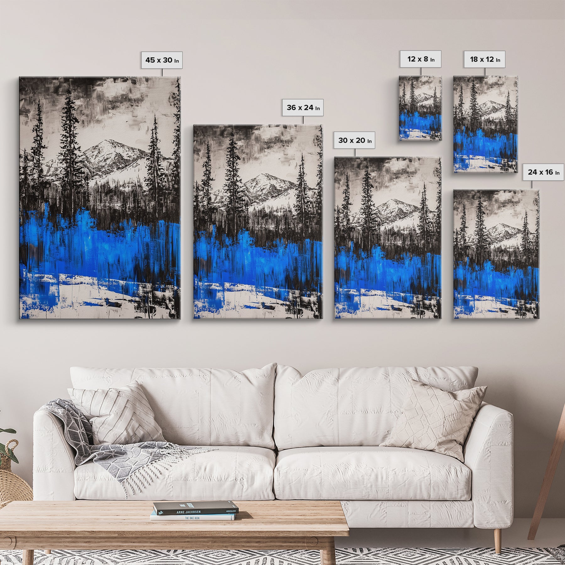 Mountain Wilderness, Winter Landscape, Blue Trees, Framed Canvas Print, Cabin Wall Art, Outdoor Lover Gift, Serene Nature Art