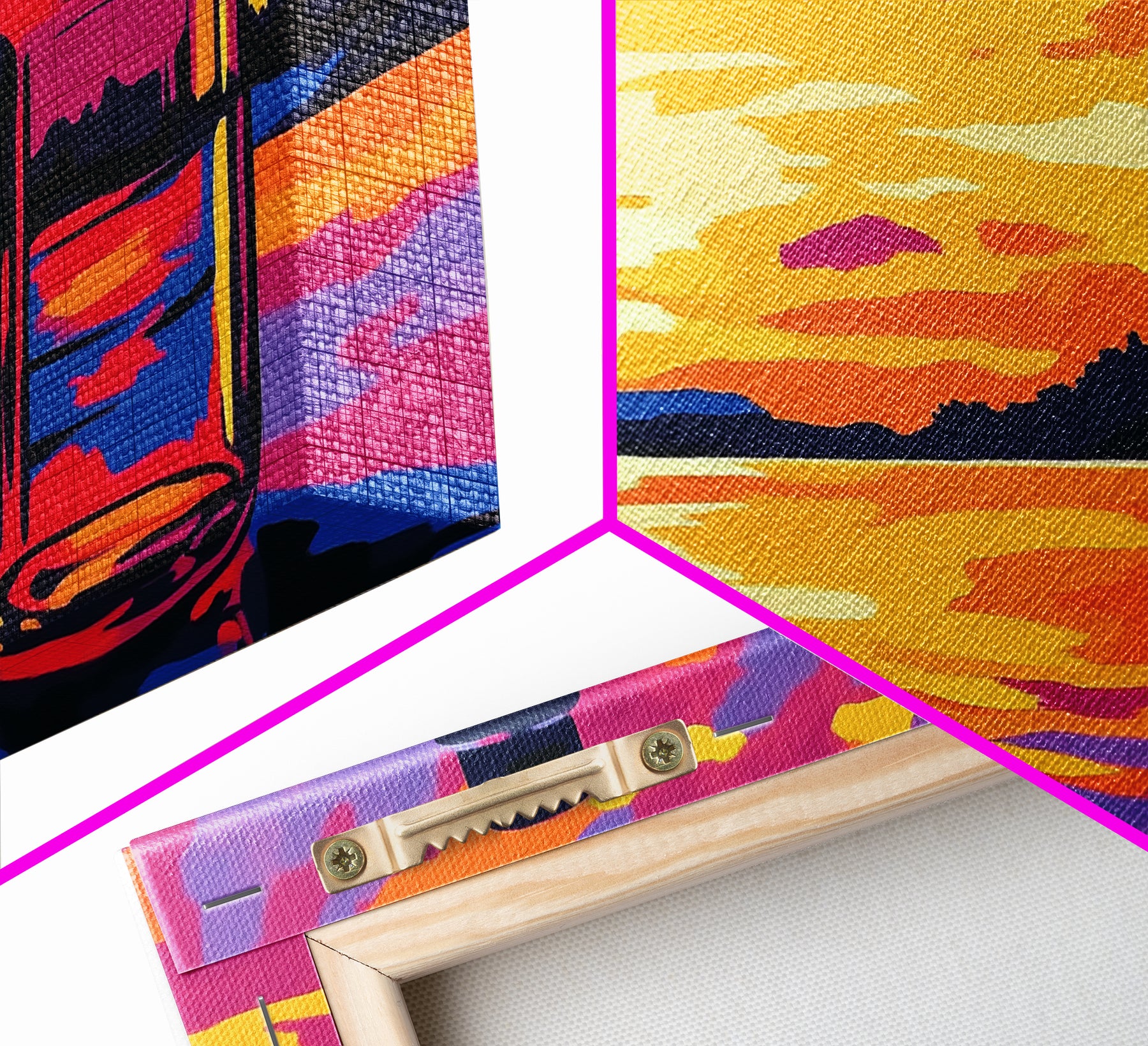 *SHIPPING: Every canvas is carefully wrapped in bubble wrap and foam corner protectors, and shipped fully assembled and ready to hang with sawtooth hangers in a flat box. All you need is a hammer!