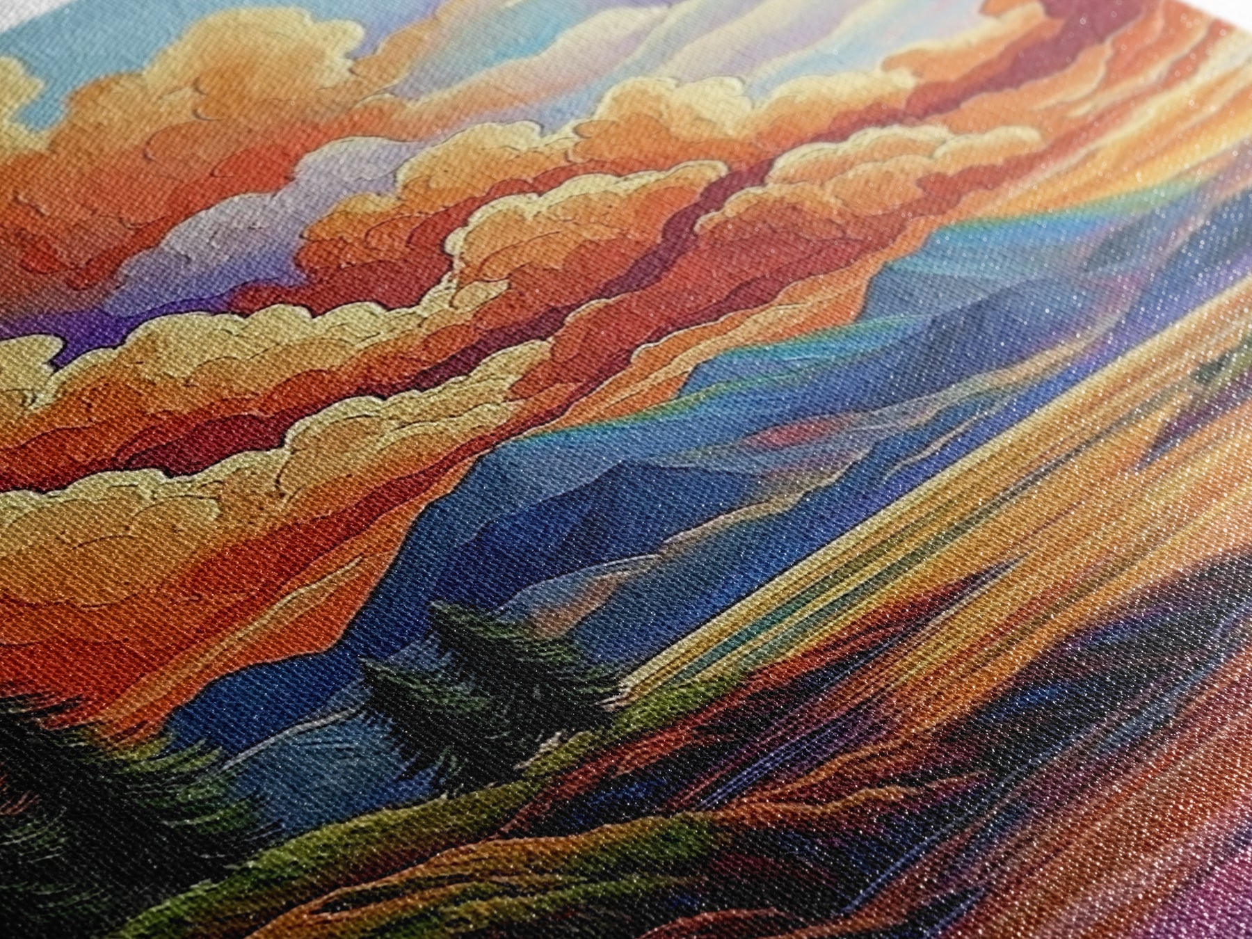 Most of our canvases are made in the USA, with the exception of canvases ordered with the light oak unstained frames, and any large canvases (24x48, 30x60, 16x48 and 20x60) ordered WITH a frame. These are temporarily made in and shipped from Europe, while we try to find a more consistent supplier in the USA.