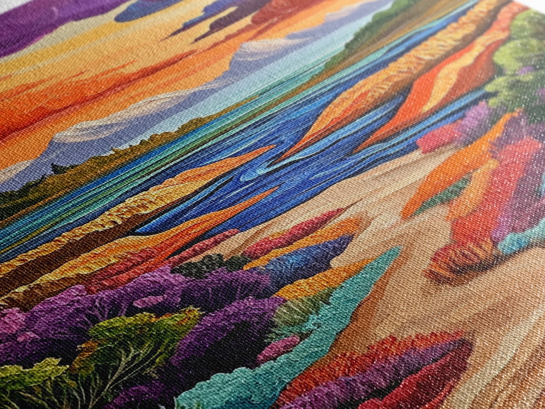 Most of our canvases are made in the USA, with the exception of canvases ordered with the light oak unstained frames, and any large canvases (24x48, 30x60, 16x48 and 20x60) ordered WITH a frame. These are temporarily made in and shipped from Europe, while we try to find a more consistent supplier in the USA.