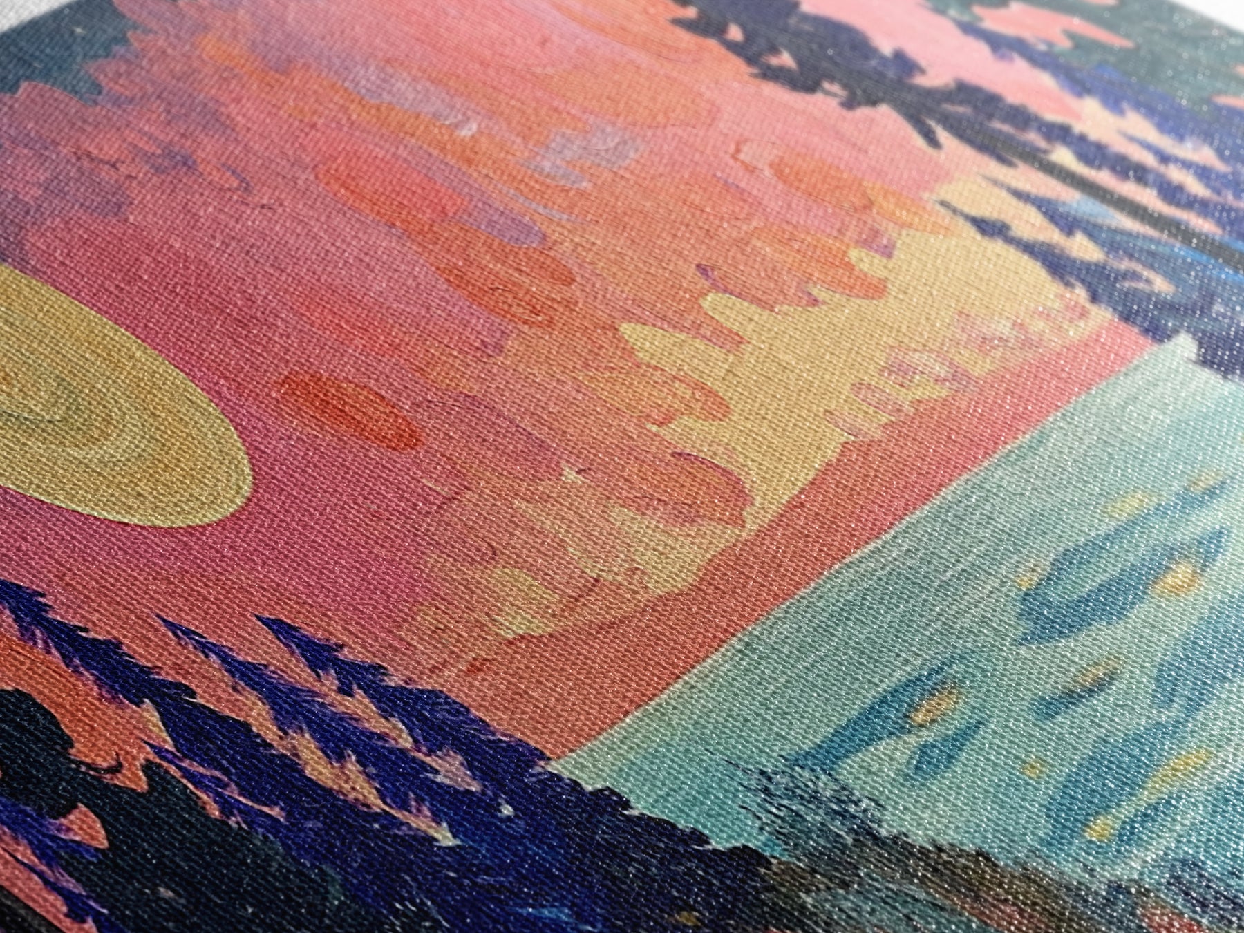 Most of our canvases are made in the USA, with the exception of canvases ordered with the light oak unstained frames, and any large canvases (24x48, 30x60, 16x48 and 20x60) ordered WITH a frame. These are temporarily made in and shipped from Europe, while we try to find a more consistent supplier in the USA.