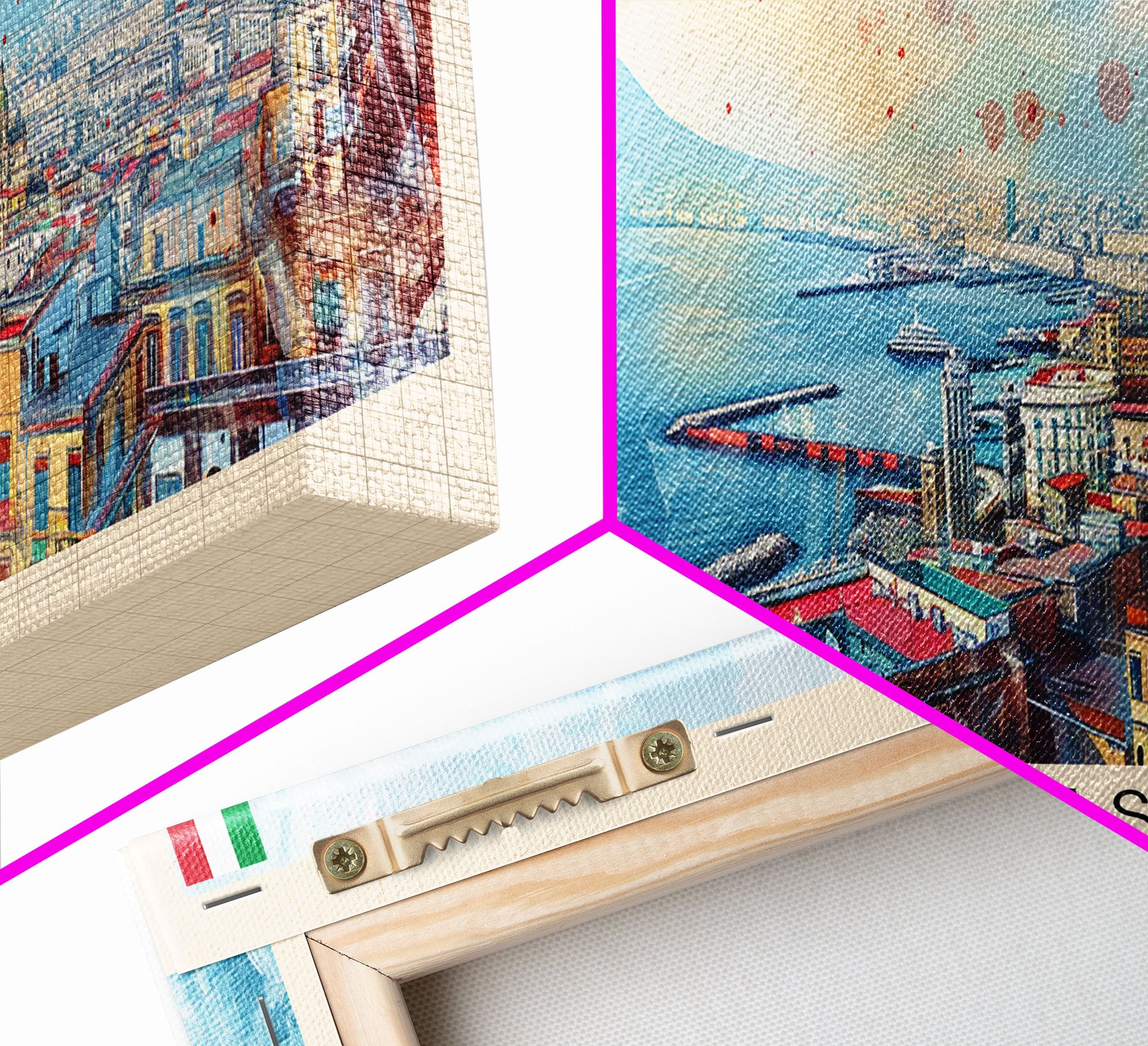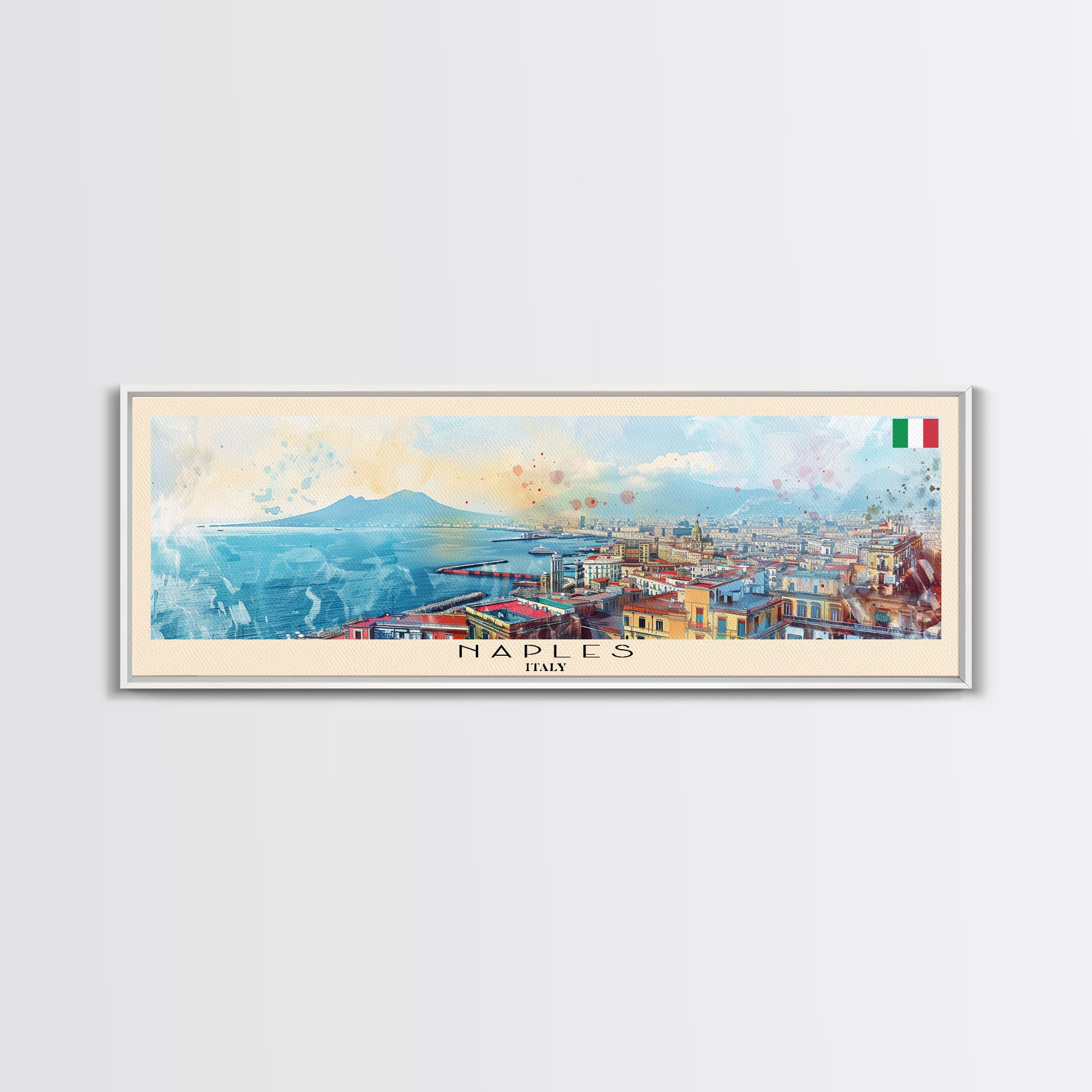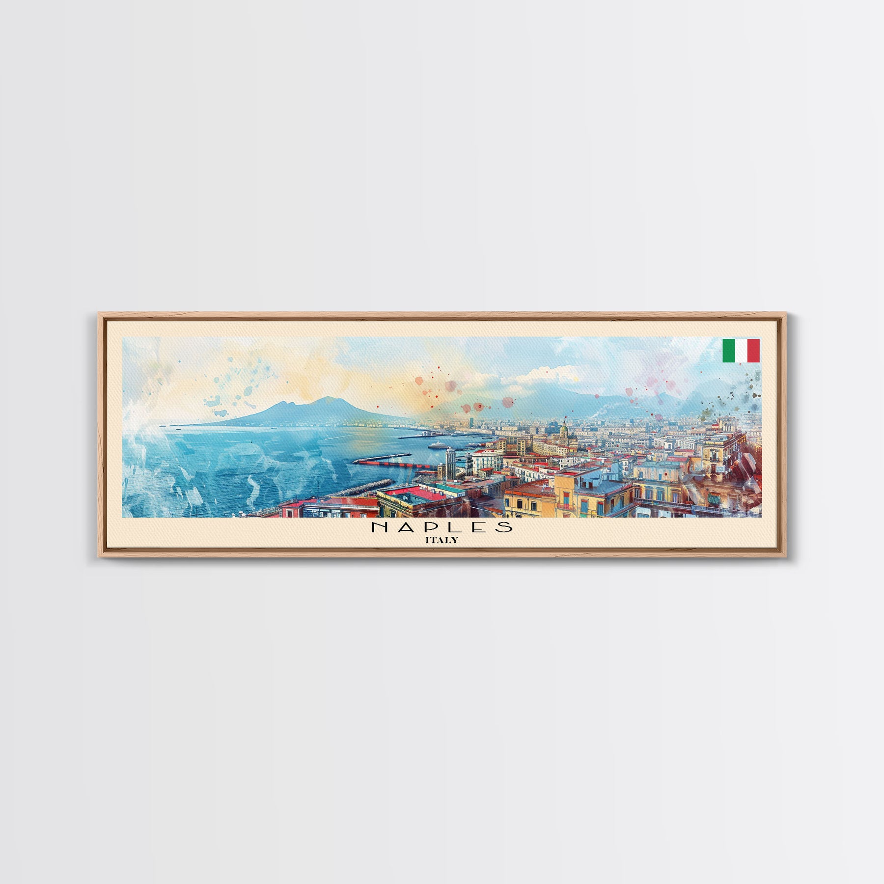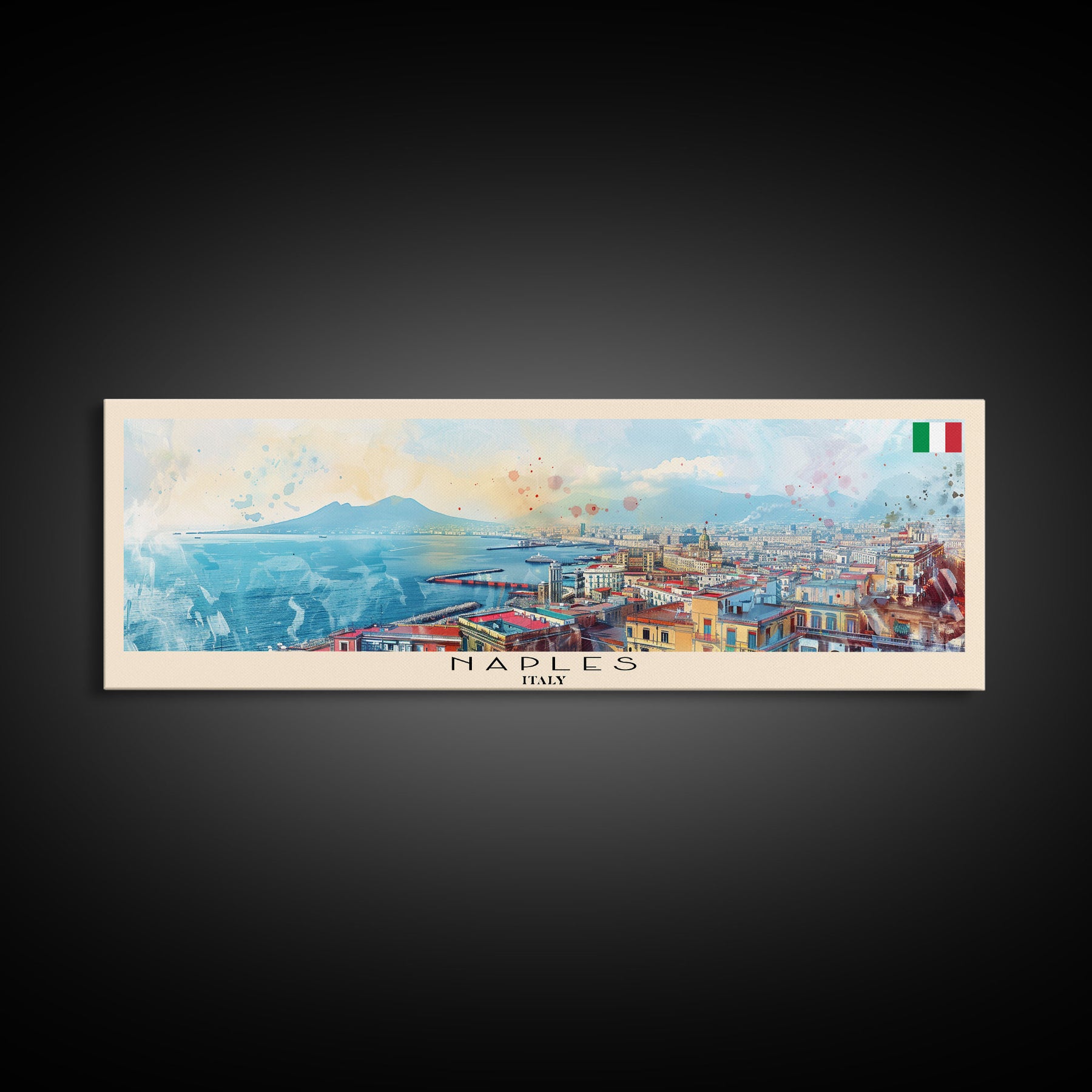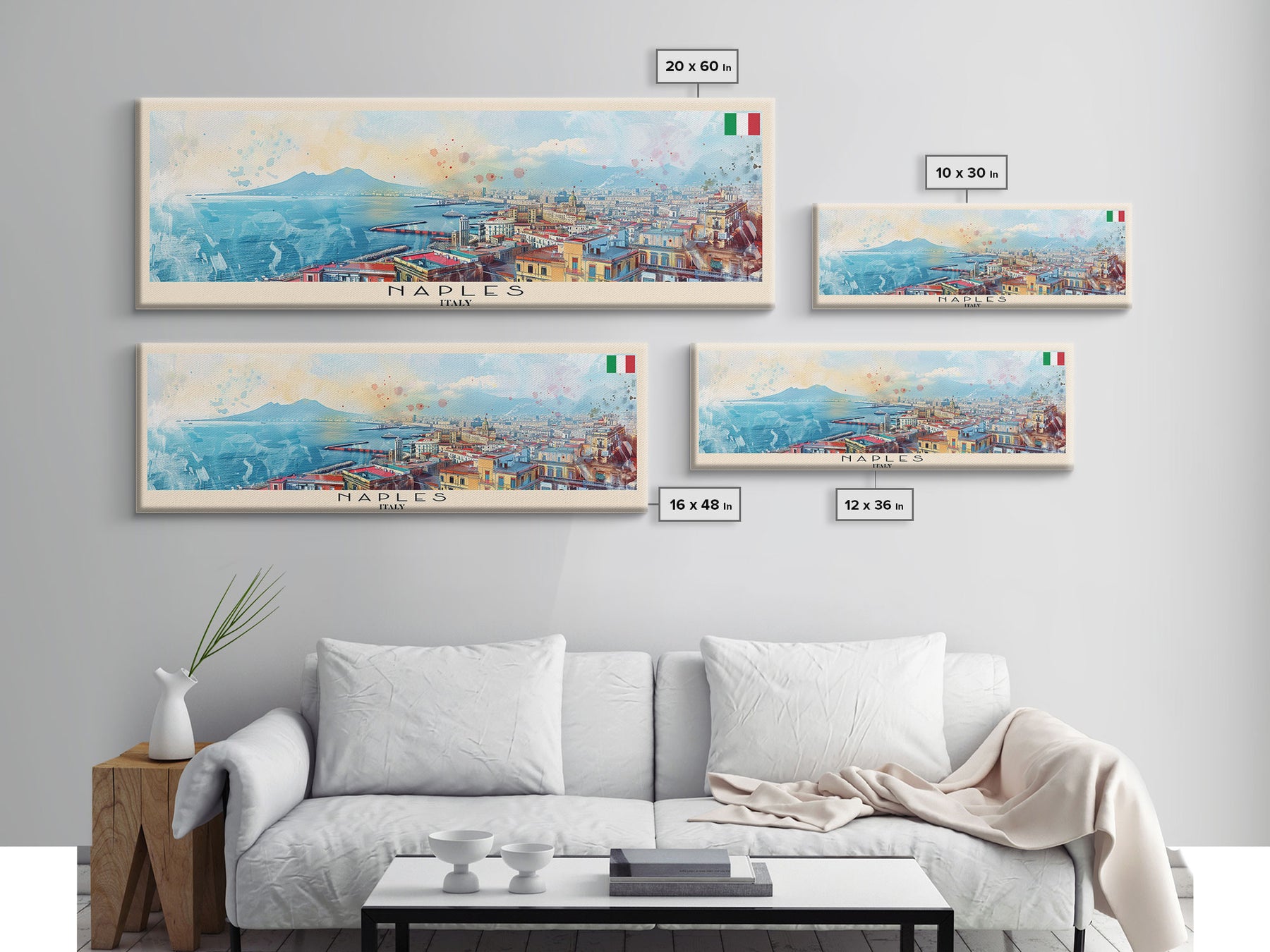 Napoles Italy Travel Art, City Art, Framed Canvas Print or Metal Wall Art, Europe Travel Poster, Panoramic Wall Art, Extra Wide Wall Art