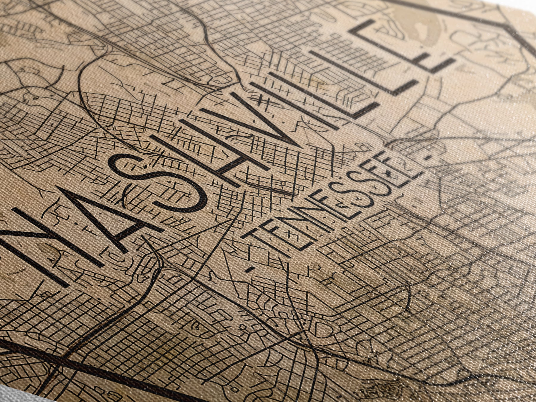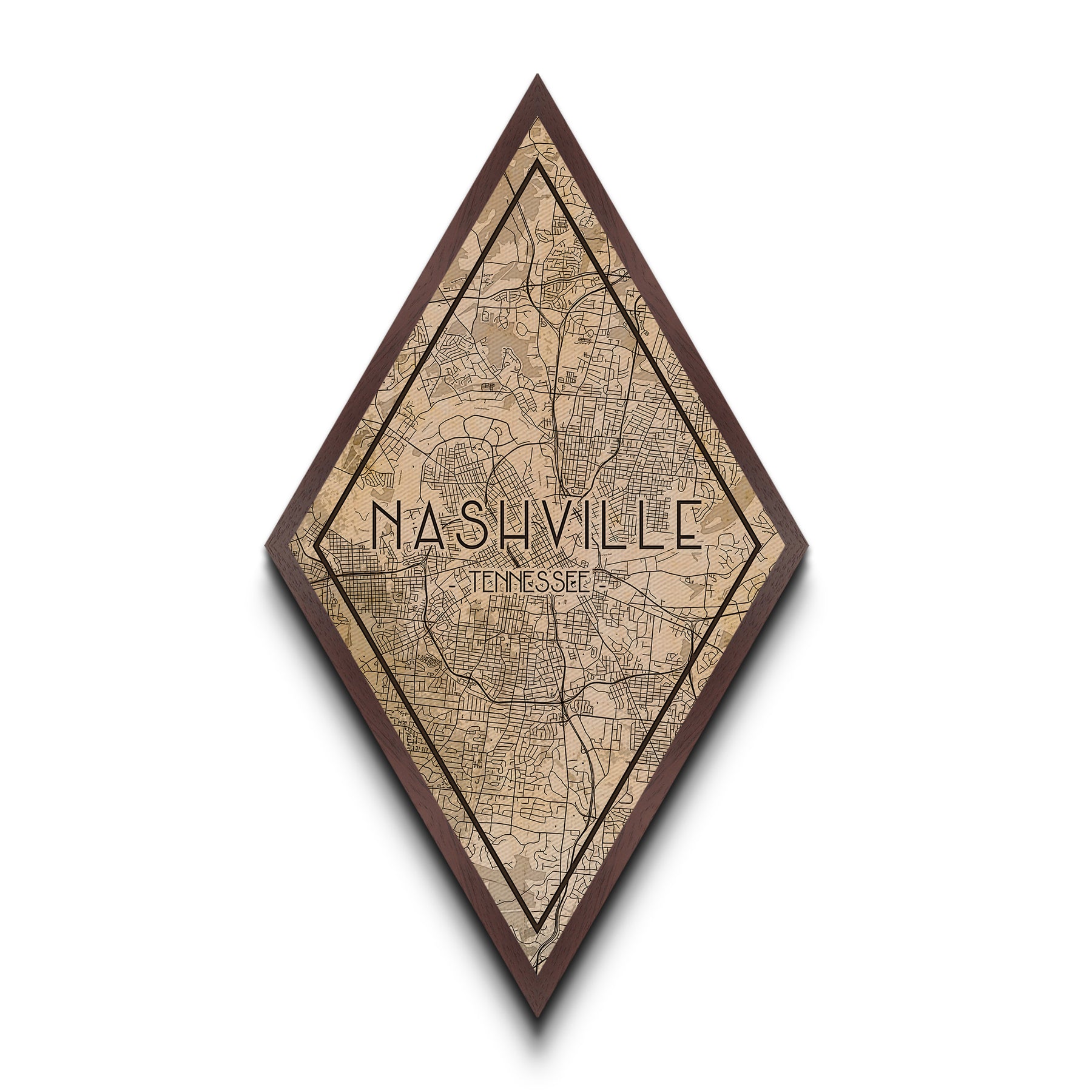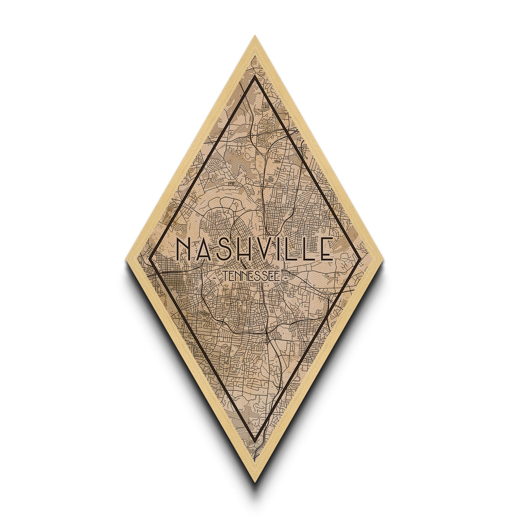 Nashville Diamond Shaped Travel Poster, Custom Diamond Shaped Wall Art, City Map Canvas