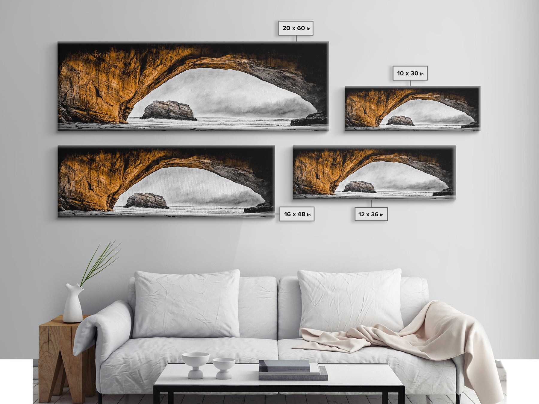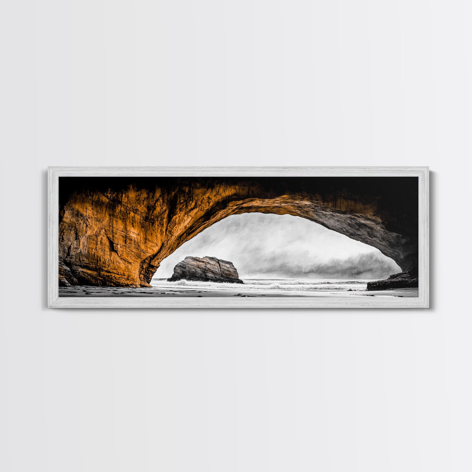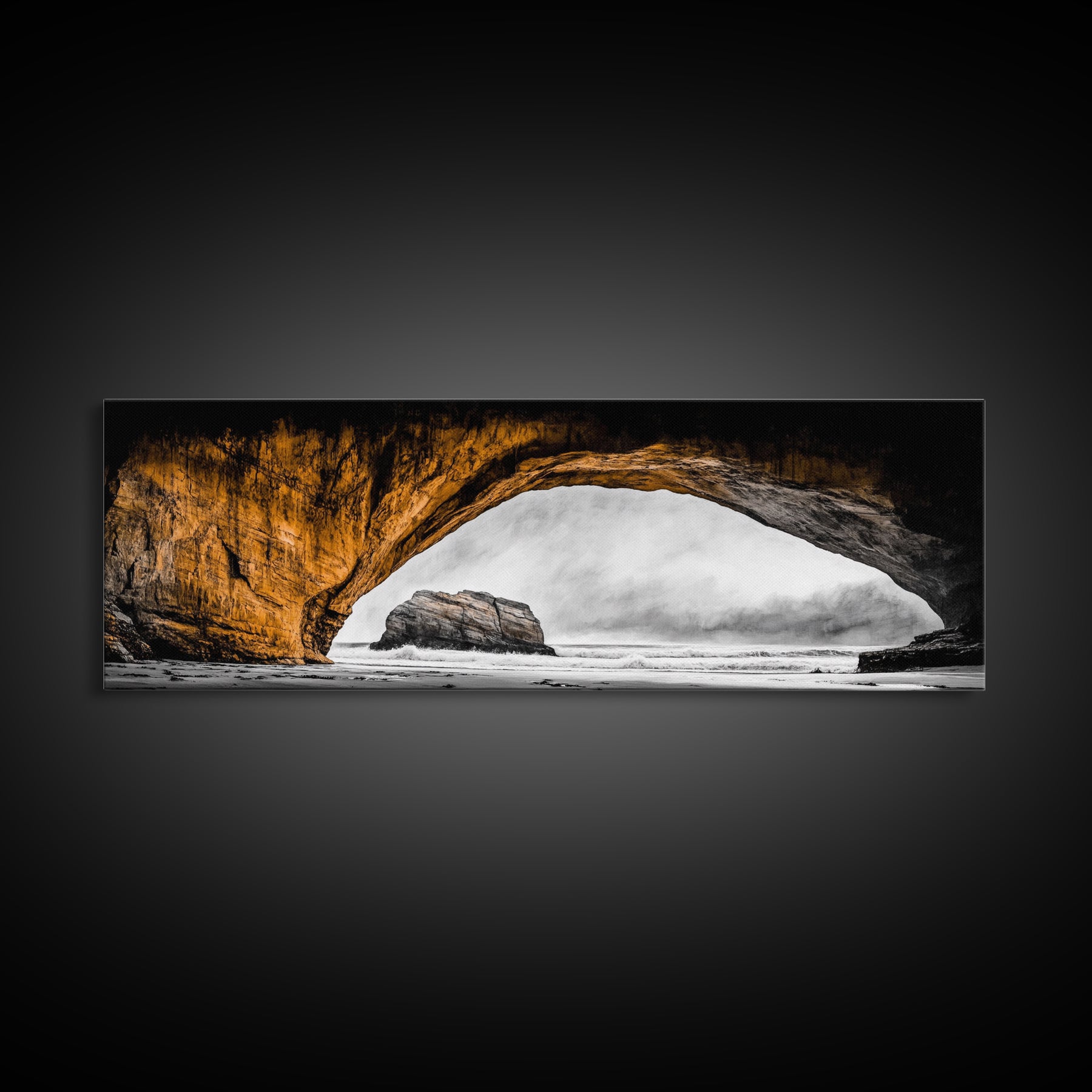 Natural Arch, Coastal Cliff Art, Black and White Landscape, Beach Rock Formation, Dramatic Seascape, Home Wall Decor, Canvas Print