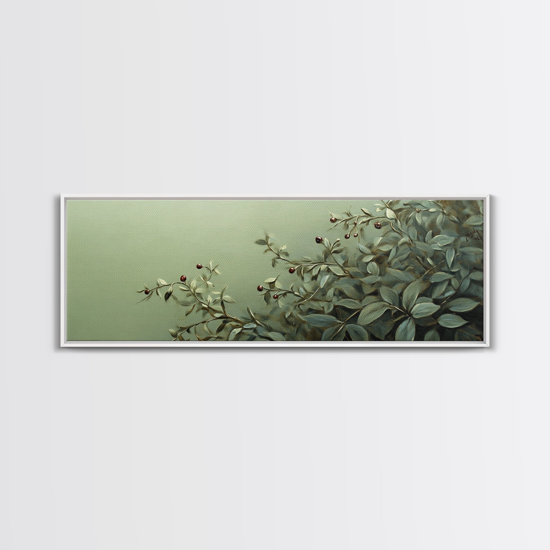 Nature-Inspired Sage Green Framed Canvas Print – Sage Green Wall Art, Botanical Prints, Minimalist Art, Bedroom Art, Wabi Sabi Art