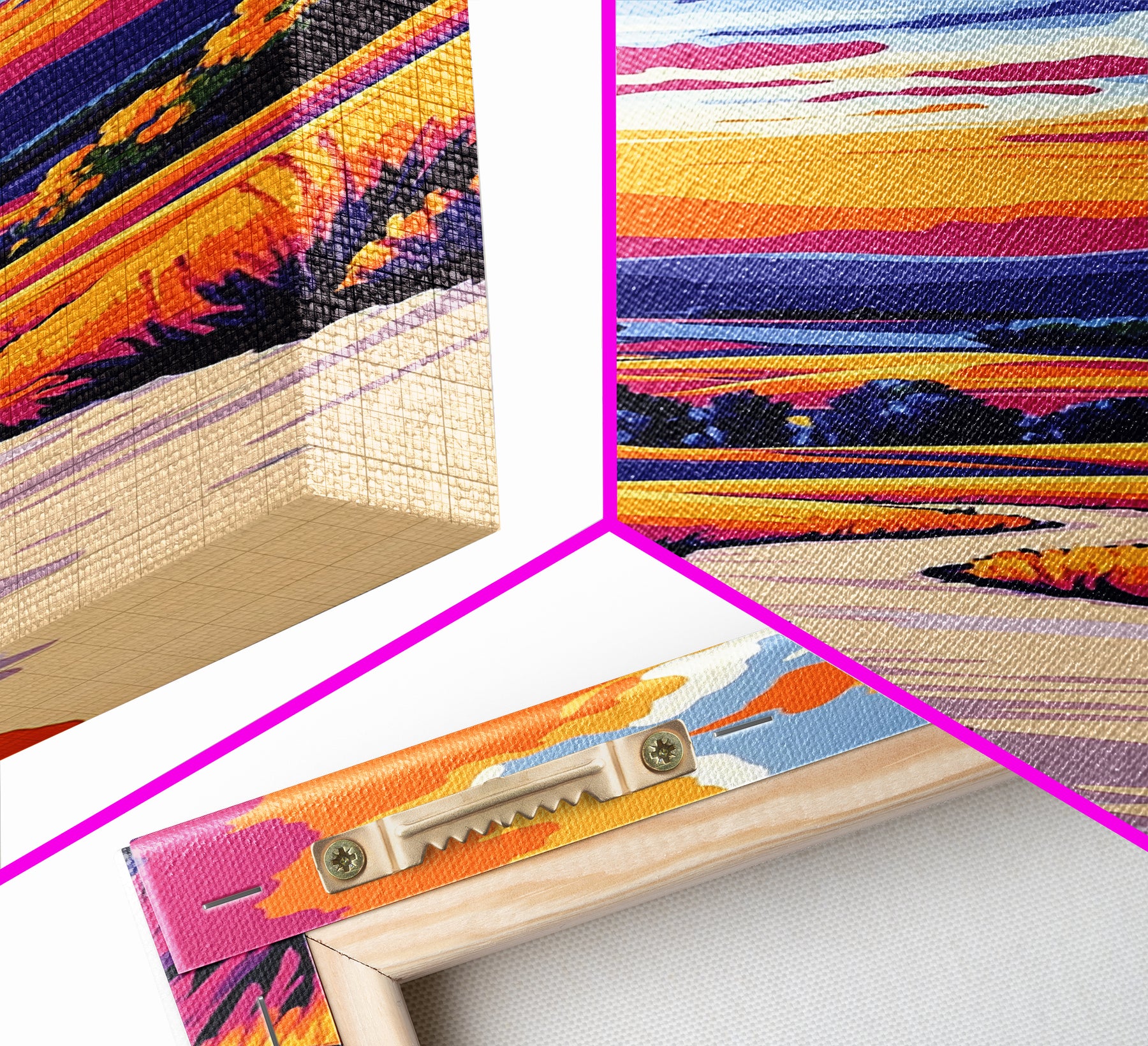 Hello and thank you for taking the time to view our modern high quality giclée artwork! We offer both posters and stretched canvas prints. Our posters are printed on Ultra Matte 60 lb / 230 GSM high quality photo paper, with a thickness of 10 mil. Our canvases are printed on museum grade 350 GSM canvas material with ECO friendly archival grade ink, then hand stretched and stapled over premium, FSC certified and shrink resistant frames. Designed and built to last a lifetime.