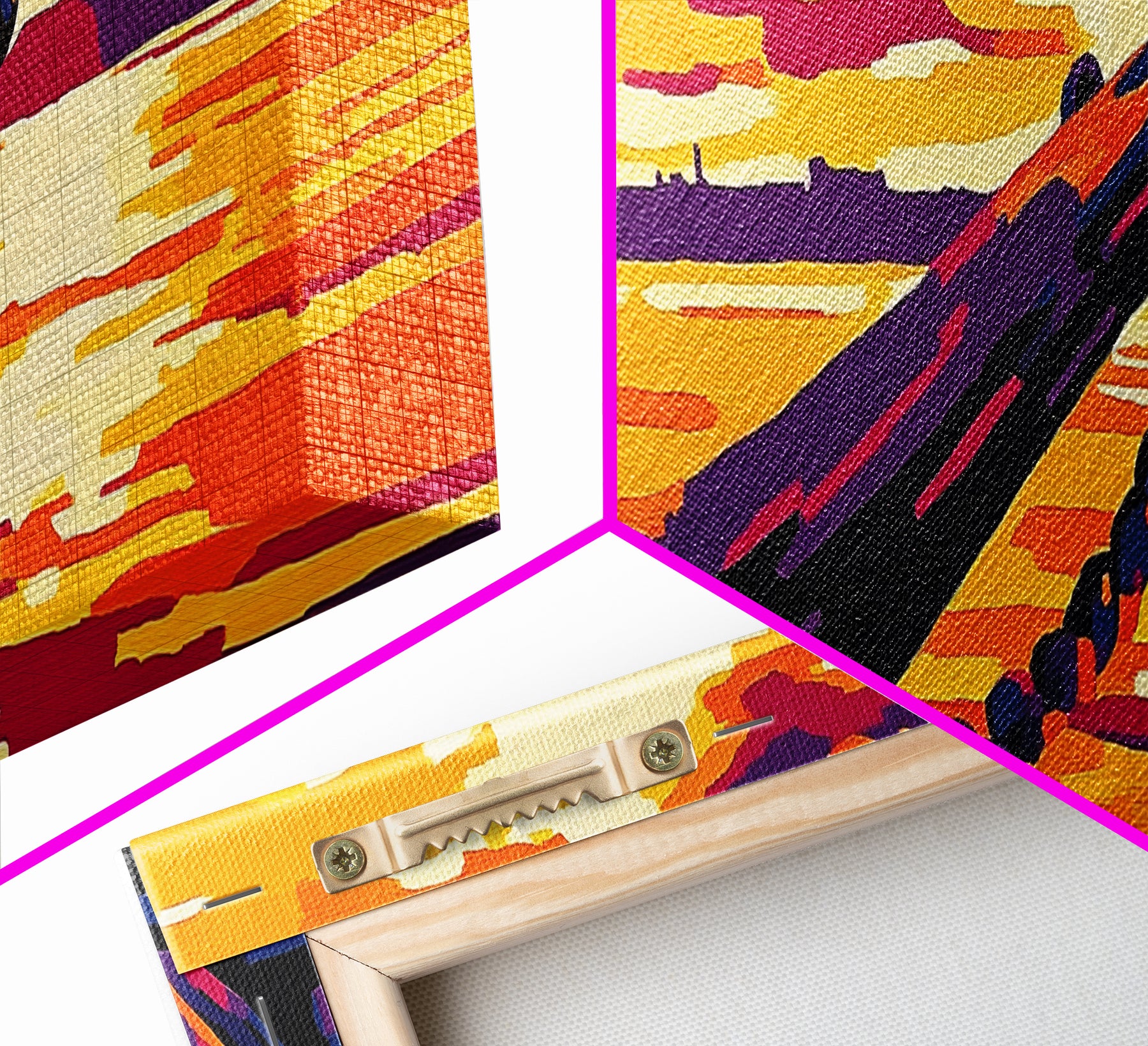 Hello and thank you for taking the time to view our modern high quality giclée artwork! We offer both posters and stretched canvas prints. Our posters are printed on Ultra Matte 60 lb / 230 GSM high quality photo paper, with a thickness of 10 mil. Our canvases are printed on museum grade 350 GSM canvas material with ECO friendly archival grade ink, then hand stretched and stapled over premium, FSC certified and shrink resistant frames. Designed and built to last a lifetime.